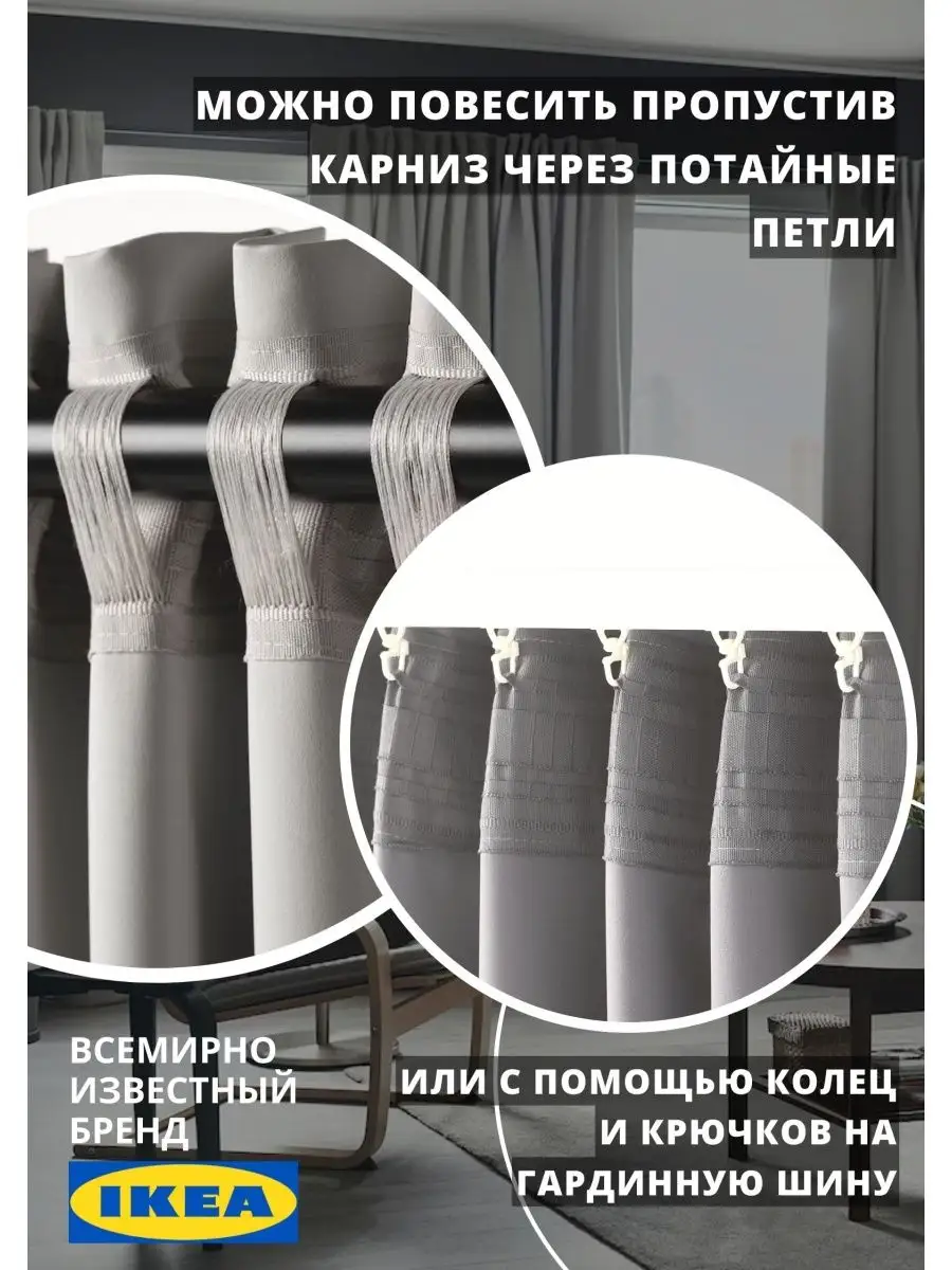 Гардины майгулл икеа шторы на ленте блэкаут 145х300 см, 2шт, светло-серые