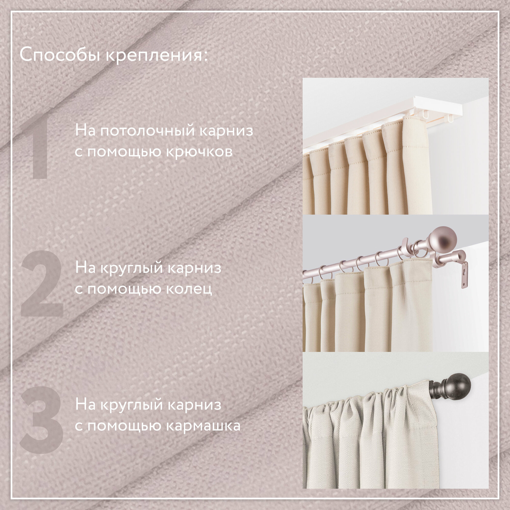 Портьера Канвас 150х260 см, пудра. Штора интерьерная для комнаты, кухни, гостиной, детской