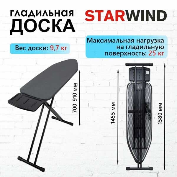 Гладильная доска Starwind SW-IB1548 серо-черная + чехол в подарок интересное: