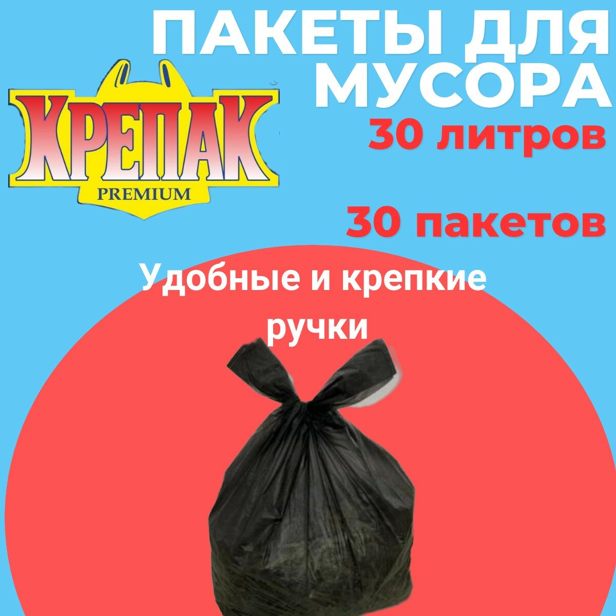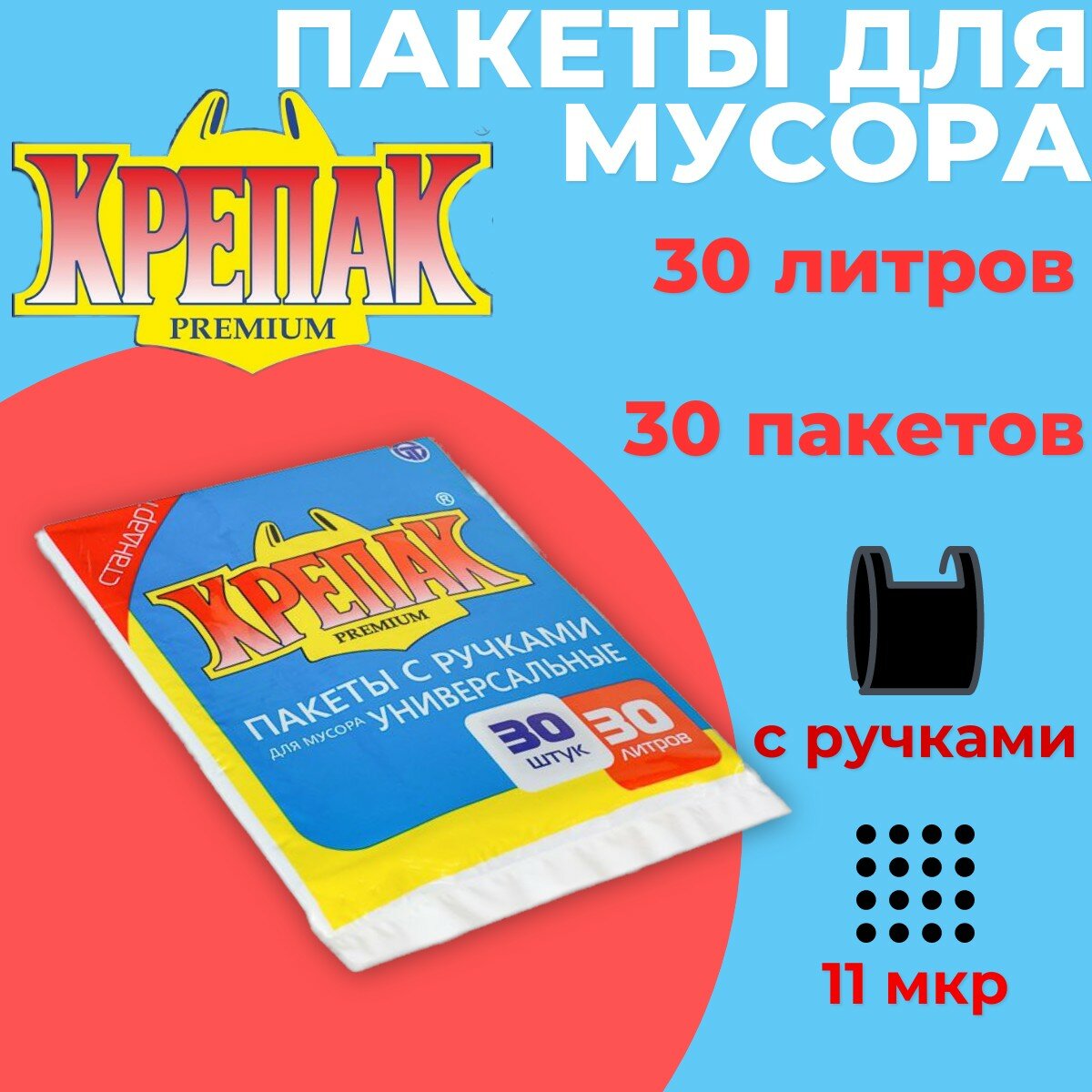 Купить Мешки для мусора Крепак с ручками 30л х 30шт (ПНД, 11 мкм), стопа