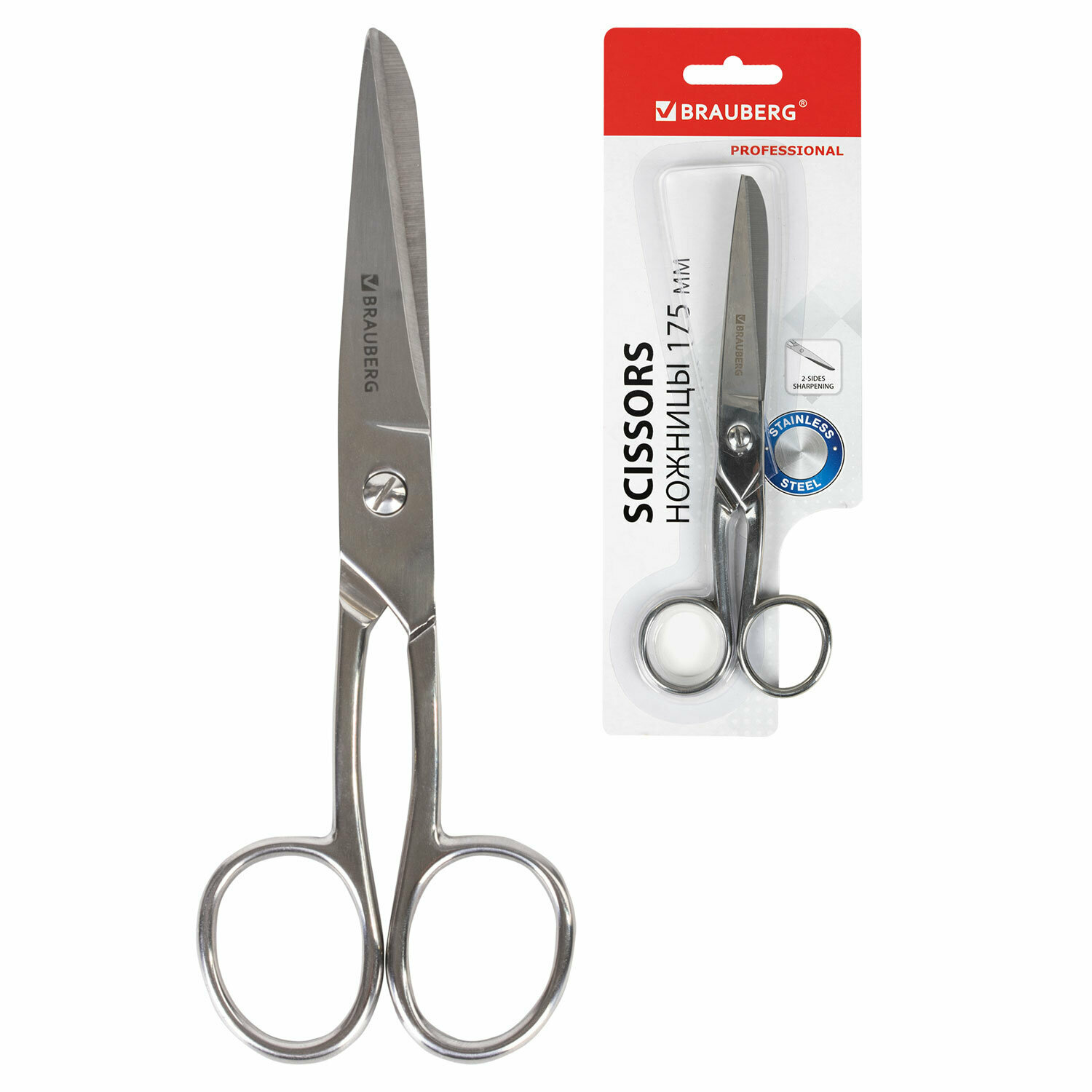 Ножницы цельнометаллические BRAUBERG "Professional", 175 мм, классической формы, 237102, 1 шт