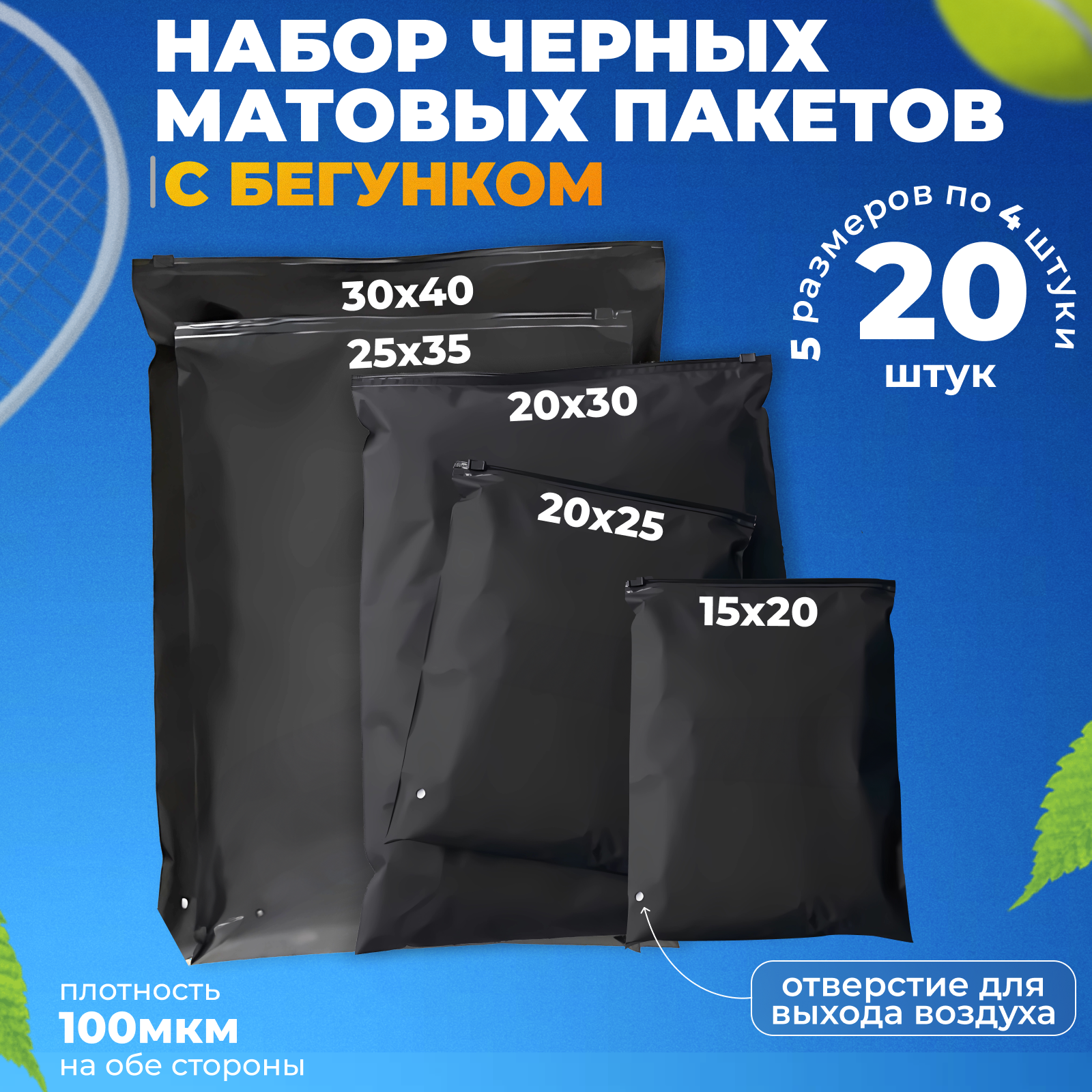 Купить Набор черных зип-пакетов с замком и бегунком, 20 шт разных размеров