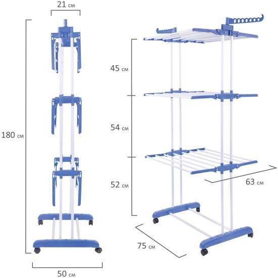 | Комплектация | Напольная раскладная сушилка для белья LAIMA HOME многофункциональная, 3 уровня, на колесах 607807 1 шт |