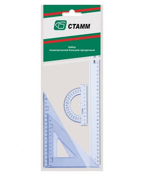 Набор чертежный СТАММ большой (линейка 30 см, 2 угольника, транспортир), прозрачный (НГ05)