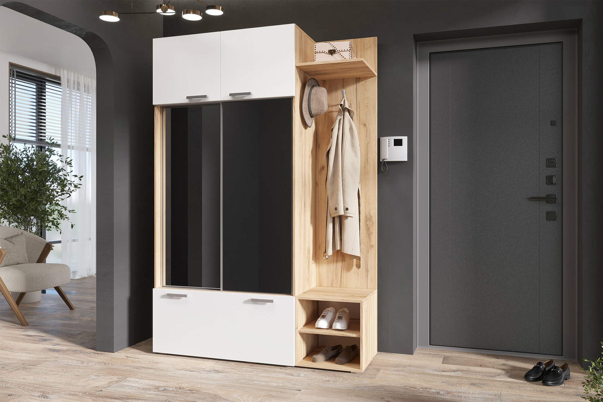 Прихожая Стелла Прихожая Стелла Белый глянец холодный, Дуб Крафт/ Прихожая с зеркалом, 142×210×44 см