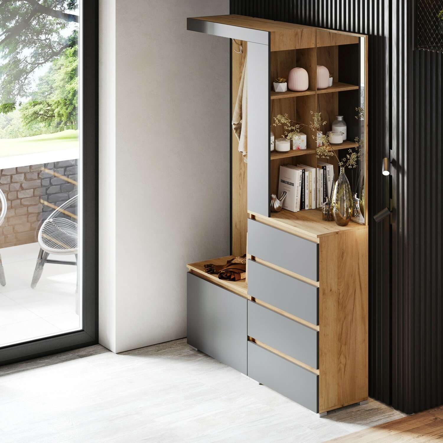 Купить Прихожая с зеркалом и обувницей Хелен ПР 01 (126х35х198) серый графит дуб крафт золото
