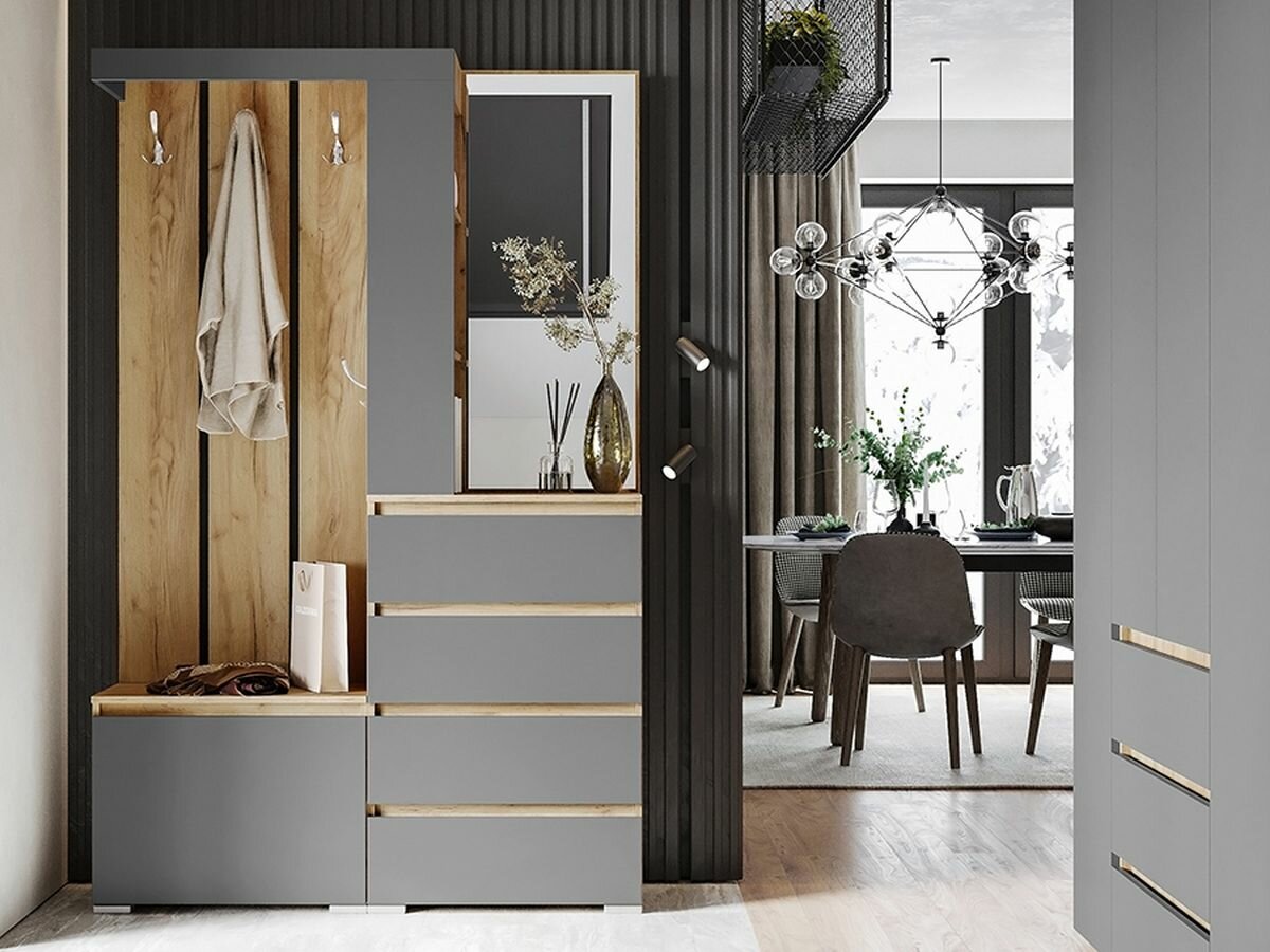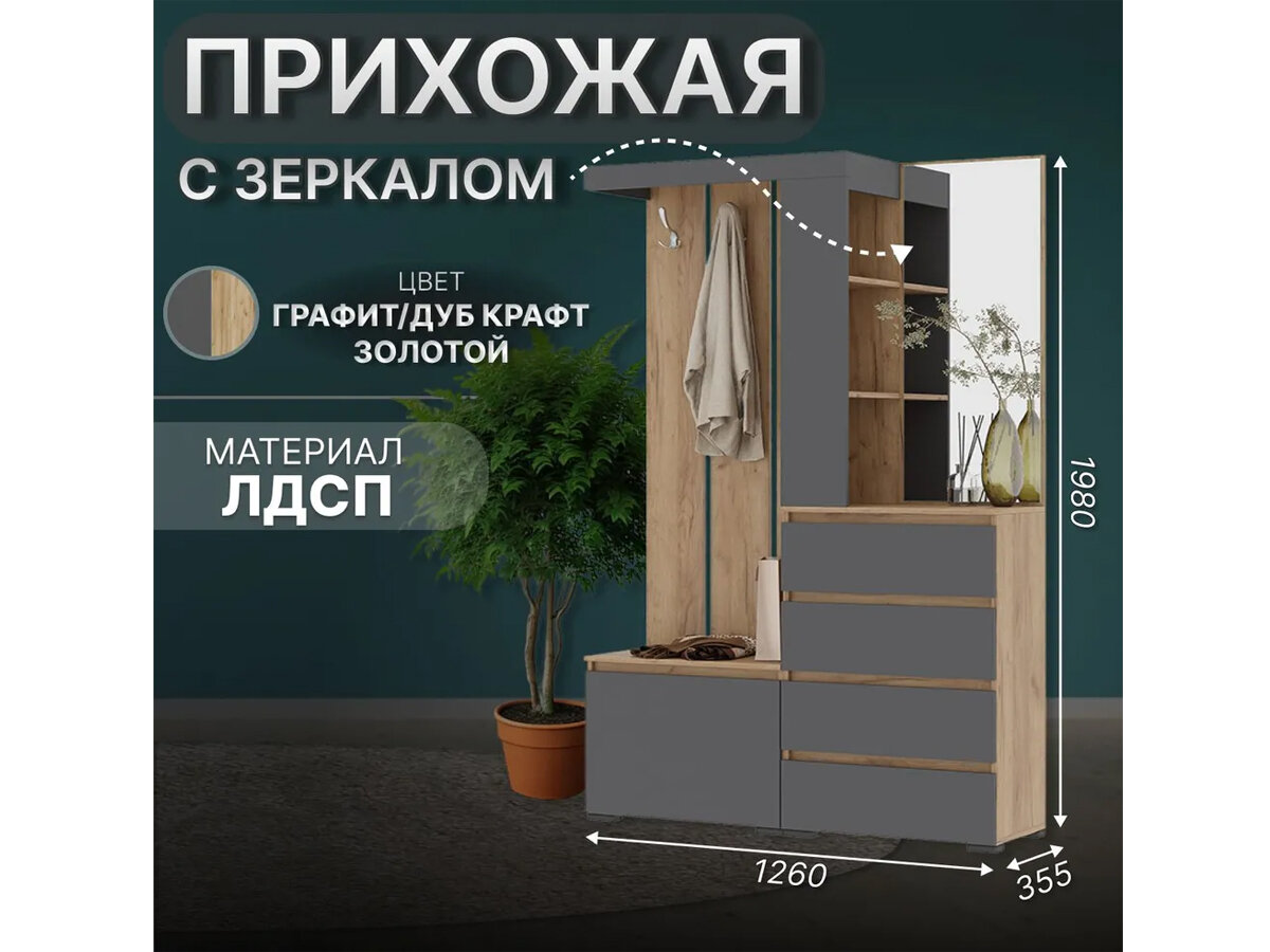 СохранитьПрихожая с зеркалом и обувницей Хелен ПР 01 (126х35х198) серый графит дуб крафт золото интересное:
