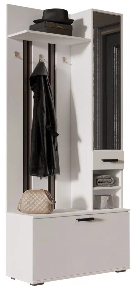 Купить Прихожая Ника ВЗ910, Белый гладкий ЛДСП с тумбой, вешалкой, полкой, зеркалом 910х2032х354, 1 шт