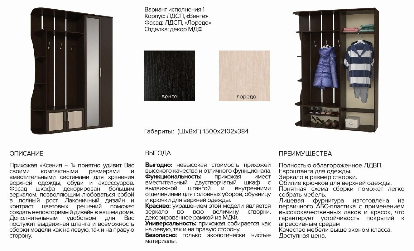 Комплект прихожей Ксения 1, Венге/Лоредо интересное: