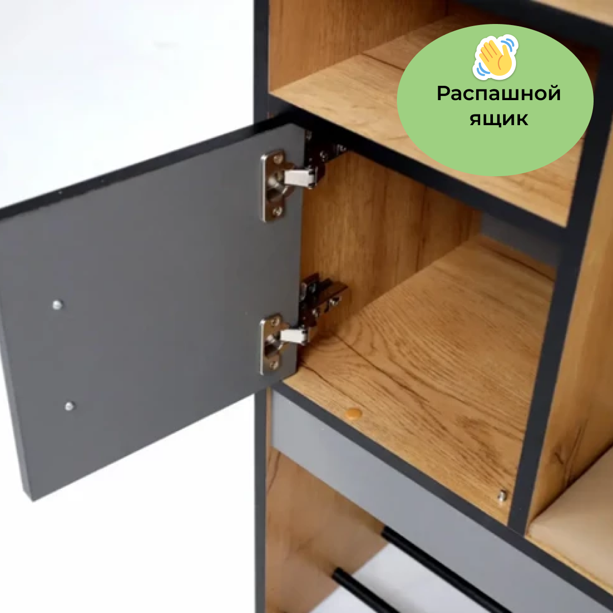 | Состав комплекта | Модуль прихожей оснащен большим зеркалом / штангой для одежды / а также крючками и верхними полочками. Встроенная тумба с выдвижным ящиком имеет открытую полку для обуви. |