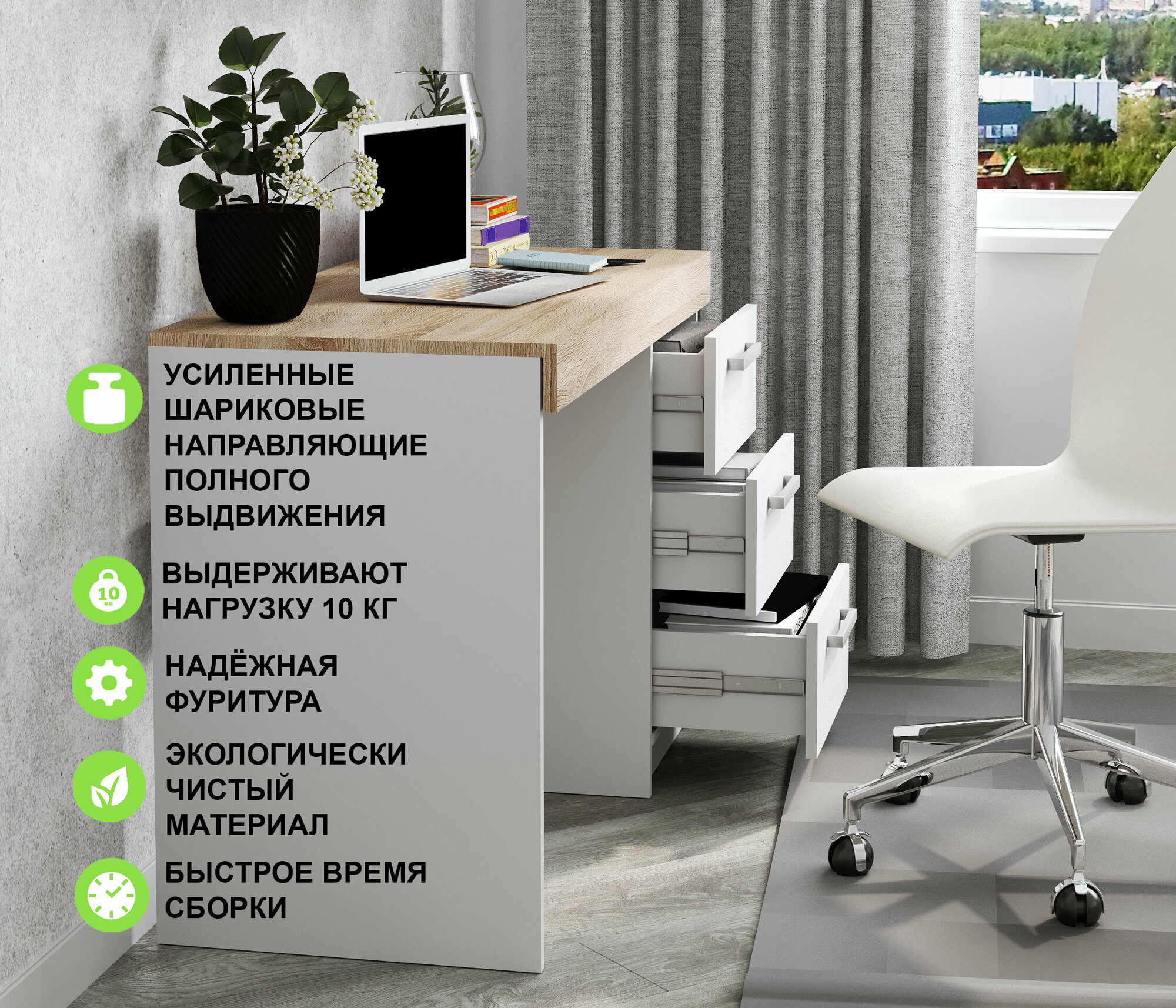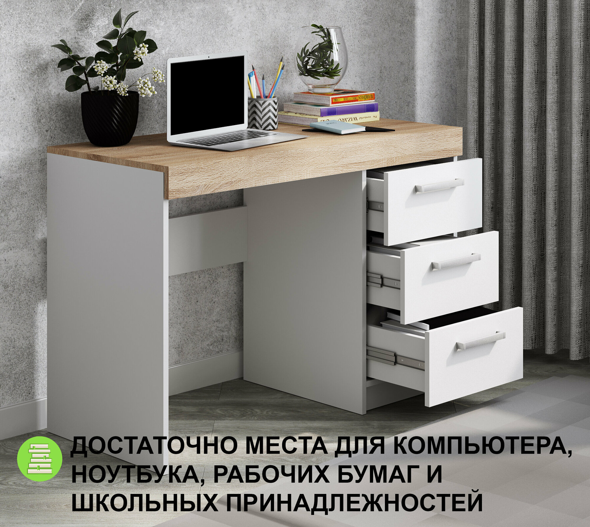 Письменный стол "Модерн" №1, В*Ш*Г (см) 110х50х75, ЛДСП, белый / дуб сонома интересное: