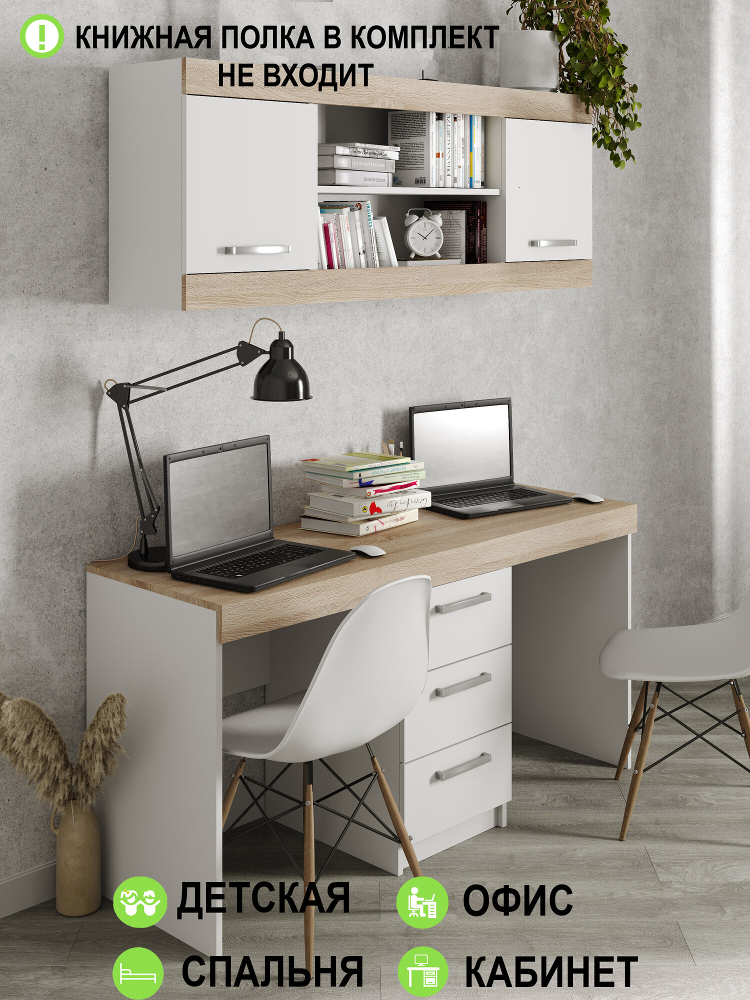 Письменный стол "Модерн" №3, В*Ш*Г (см) 75х150х50, ЛДСП, белый / дуб сонома интересное: