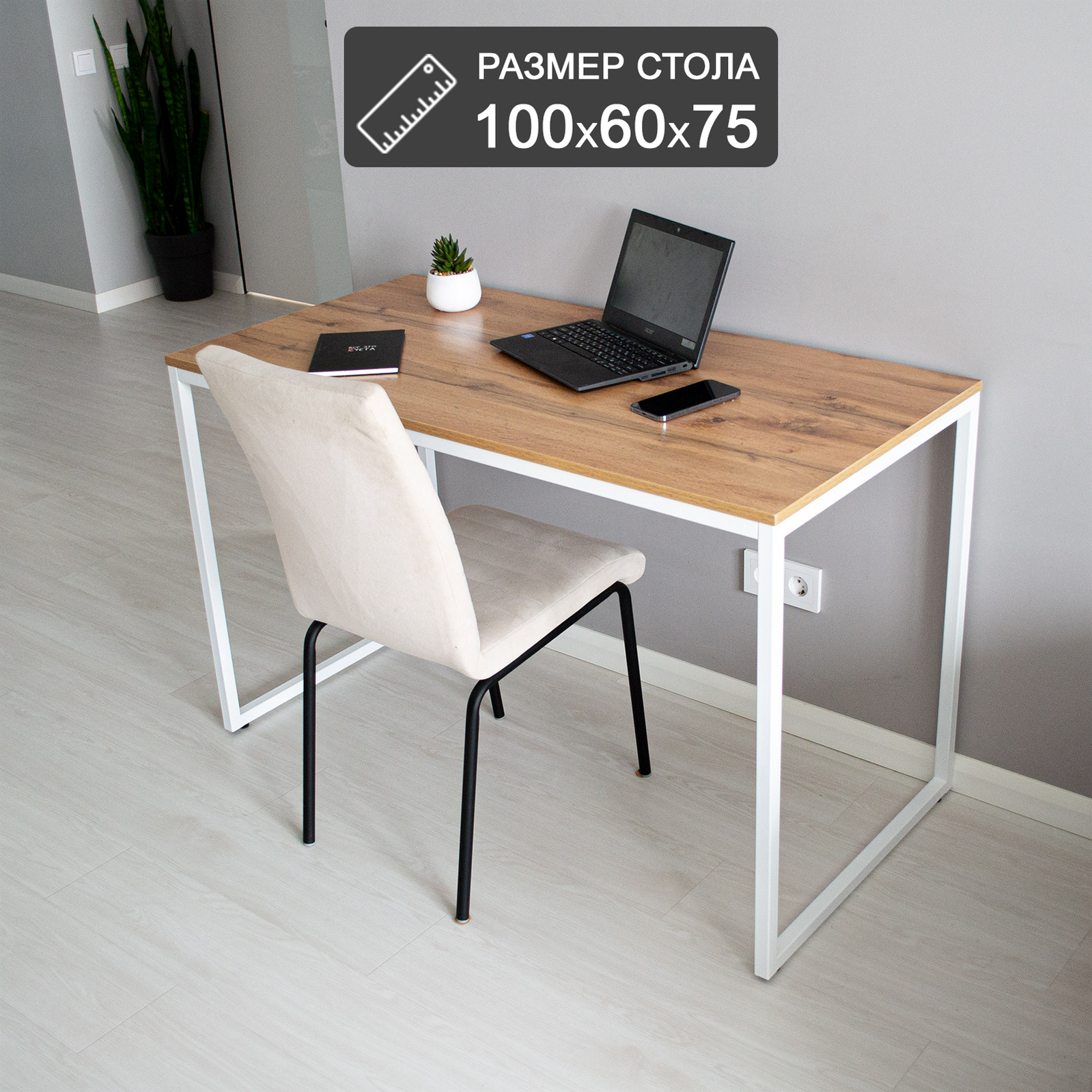 Купить Стол рабочий кухонный письменный компьютерный обеденный для кухни лофт 100х60х75 см, Белый/Дуб вотан