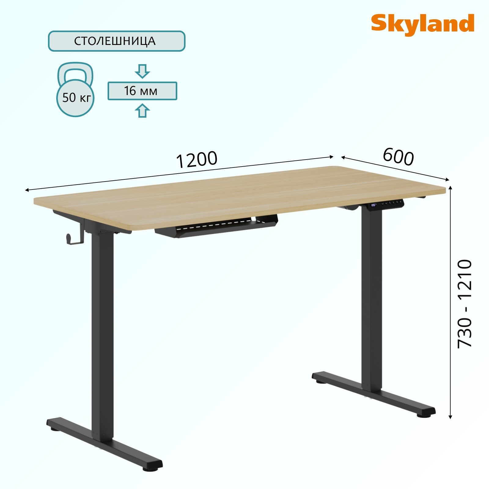 Компьютерный стол с регулировкой высоты / письменный стол SKYLAND XTEN-UP AT-002, дуб светлый/черный, 1200х600х730/1210
