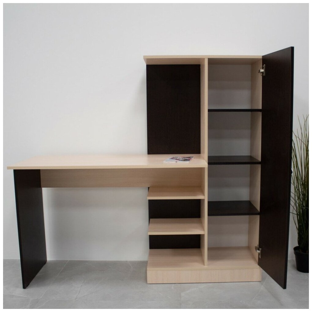 Компьютерный стол "Квартет-12" Венге Цаво/Дуб молочный ЛДСП, с полками, для спальни, гостиной, детской, кабинета 1752х900х900 тэкс