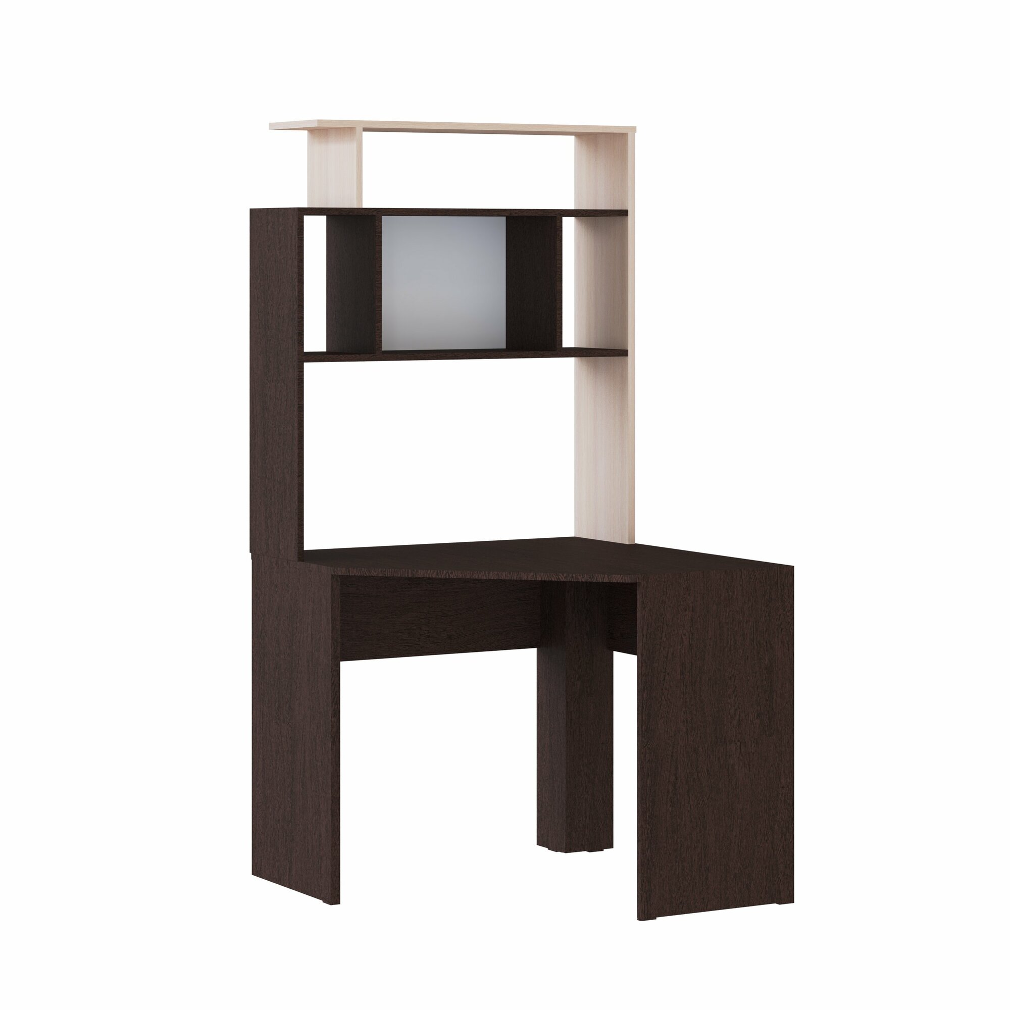 Стол компьютерный «Квартет-12» с надстройкой, венге/дуб молочный (900х900х1752)