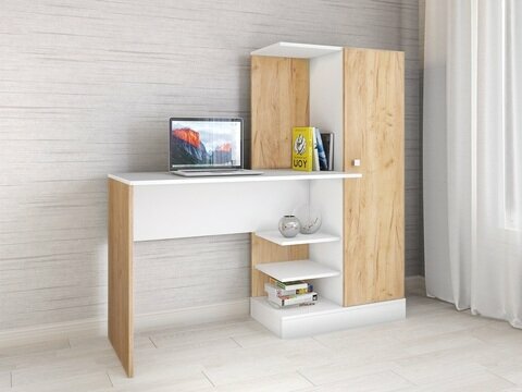 СохранитьКомпьютерный стол "Квартет-6" Белый с тиснением "Древесные поры"/Дуб Крафт Золотой ЛДСП, с открытыми и закрытыми полками, для спальни, гостиной 1350х1450х500 тэкс интересное: