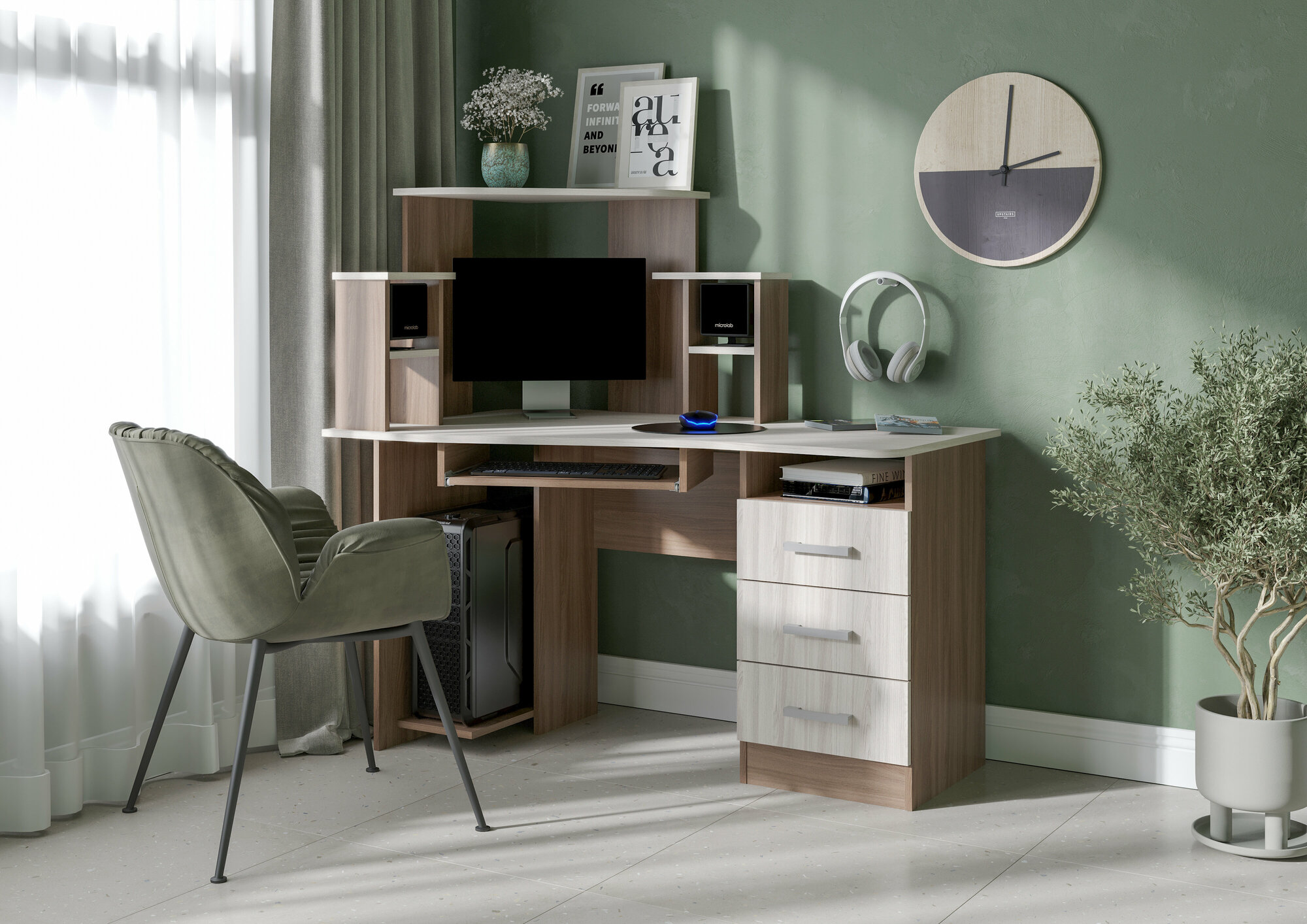 Стол компьютерный МФ Стендмебель №4, ЛДСП, универсальный угол, тумба, 2 полки