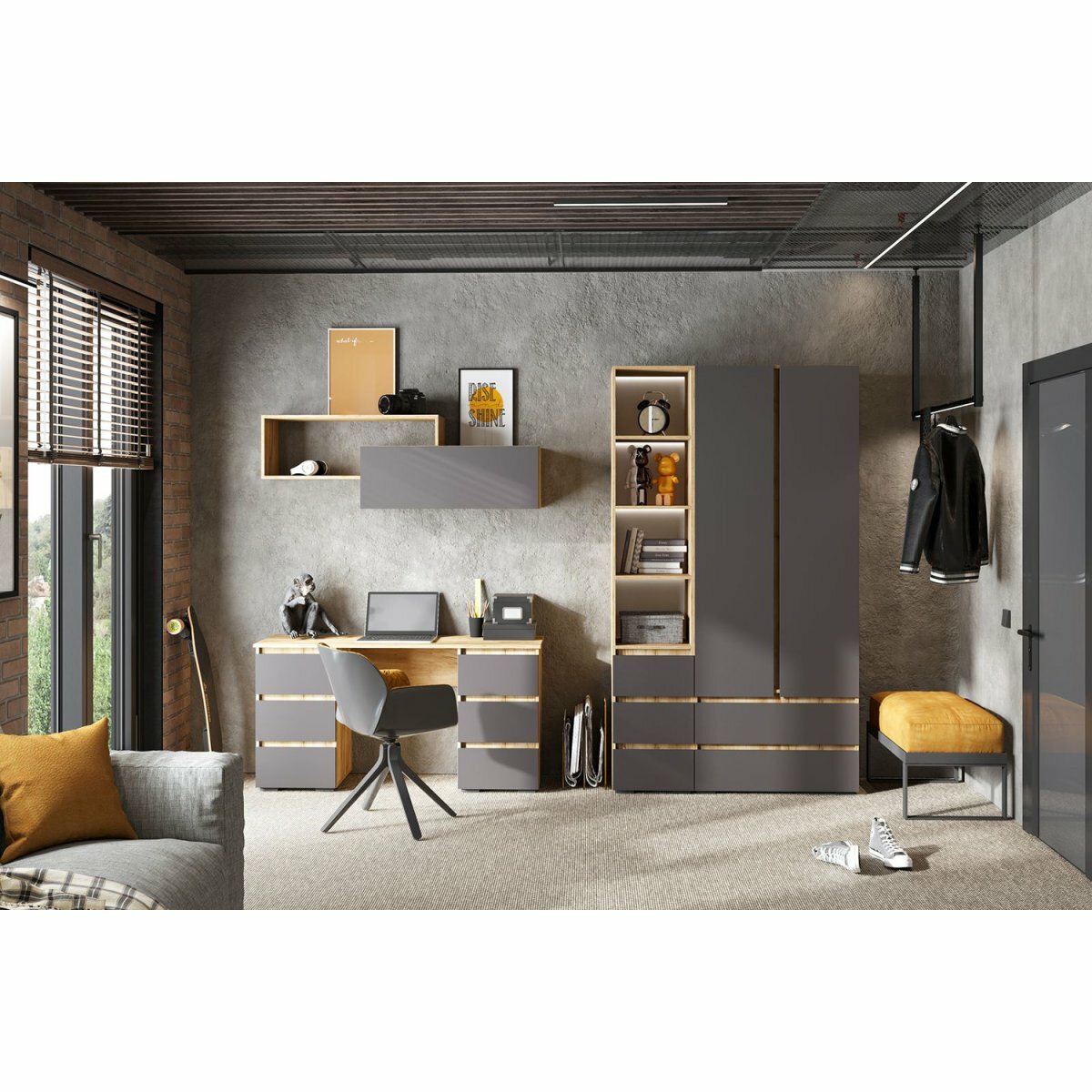 Письменный стол «Хелен» ПС 02 ЛДСП, серый графит/дуб крафт золото (1420х500х730)
