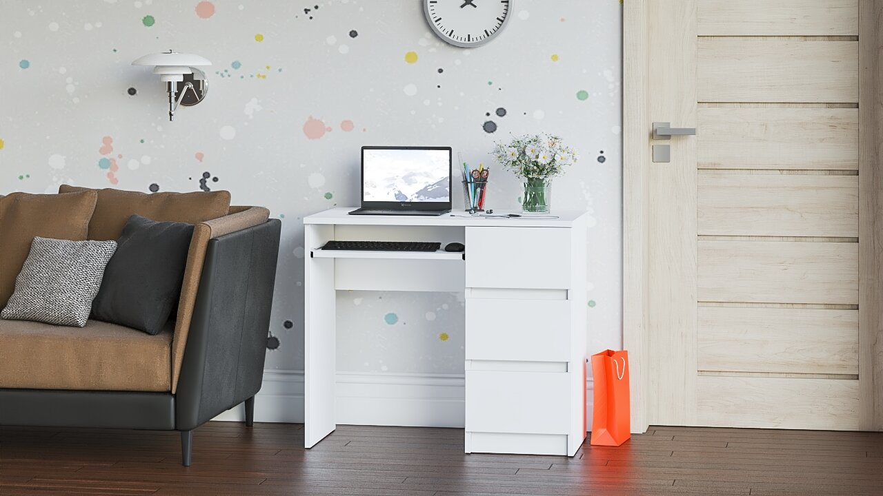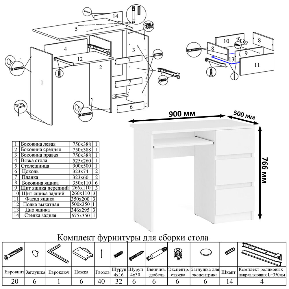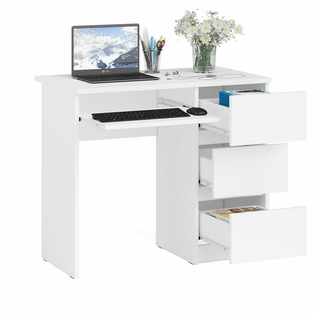 Стол компьютерный три ящика Мори МС-6 левый цвет белый, ШхГхВ 90х50х76,6 см, ящики слева, НЕ универсальная сборка