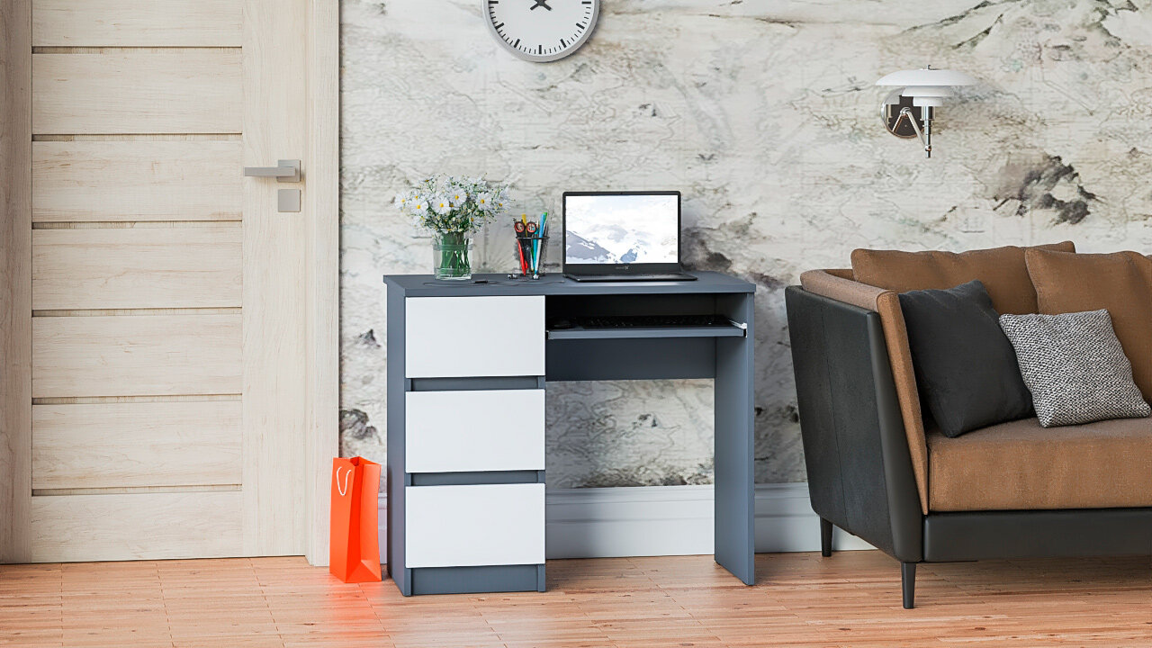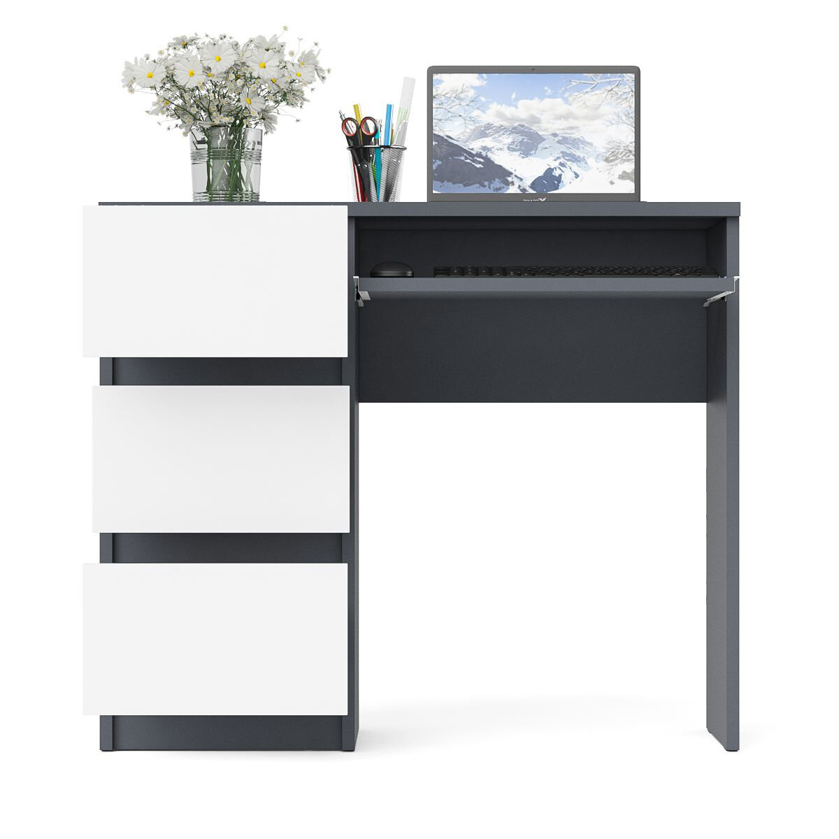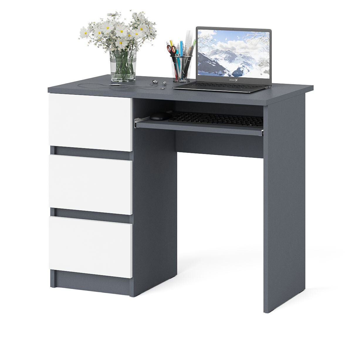 Стол компьютерный три ящика Мори МС-6 правый цвет графит/белый, ШхГхВ 90х50х76,6 см, ящики справа, НЕ универсальная сборка