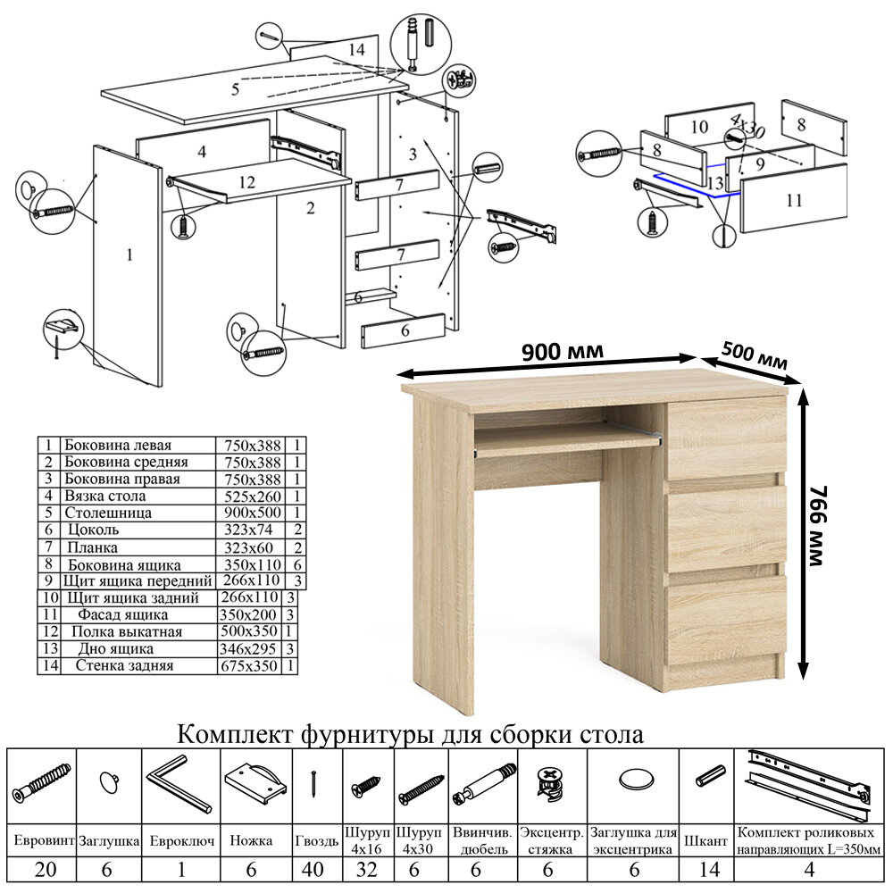 СохранитьСтол компьютерный три ящика Мори МС-6 правый цвет дуб сонома, ШхГхВ 90х50х76,6 см, ящики справа, НЕ универсальная сборка интересное: