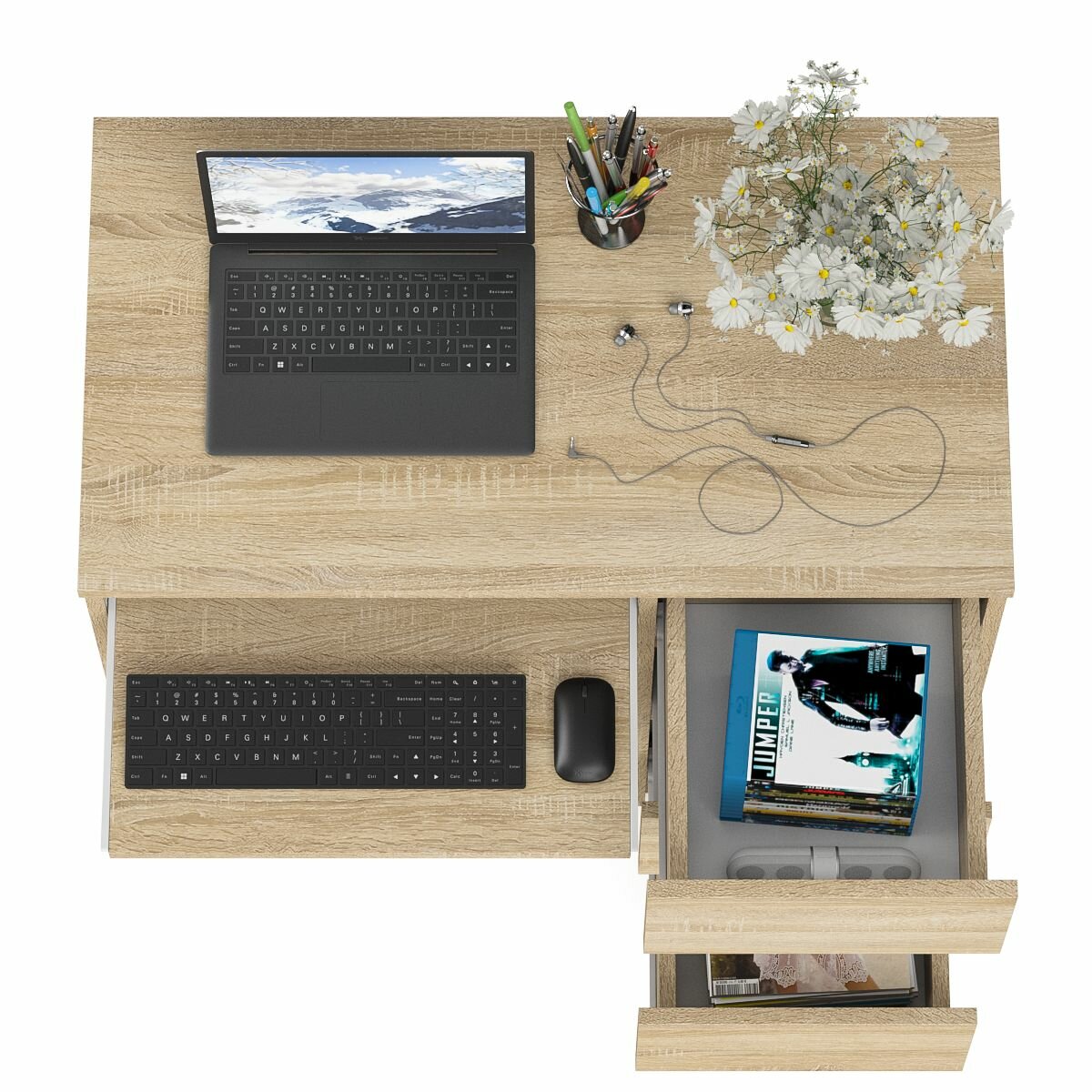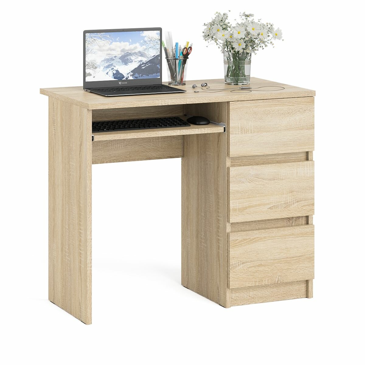 Стол компьютерный три ящика Мори МС-6 правый цвет дуб сонома/белый, ШхГхВ 90х50х76,6 см, ящики справа, НЕ универсальная сборка