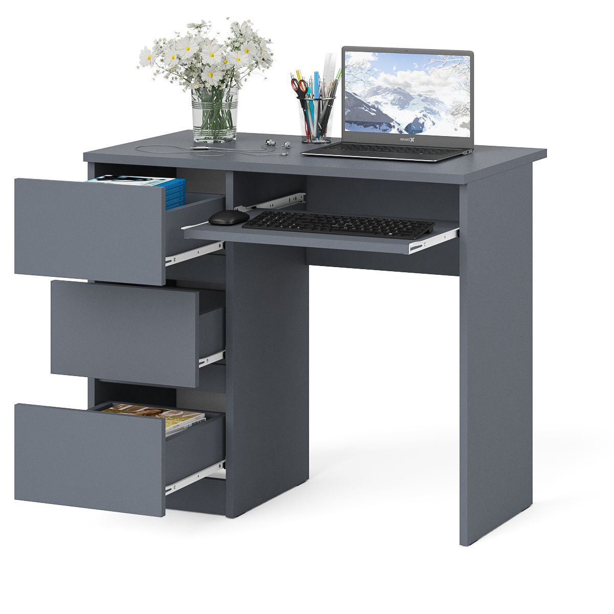 Купить Стол компьютерный три ящика Мори МС-6 левый цвет графит, ШхГхВ 90х50х76,6 см, ящики слева, НЕ универсальная сборка