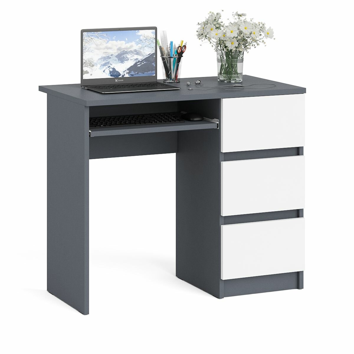 Купить Стол компьютерный три ящика Мори МС-6 правый цвет графит/белый, ШхГхВ 90х50х76,6 см, ящики справа, НЕ универсальная сборка