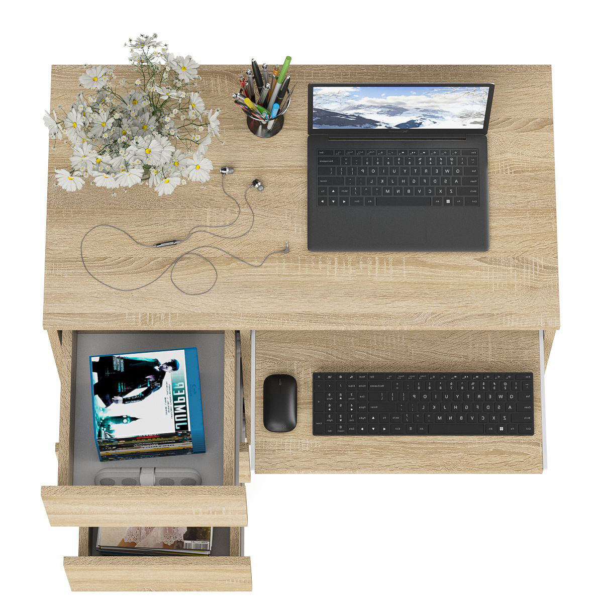 Стол компьютерный три ящика Мори МС-6 правый цвет дуб сонома/белый, ШхГхВ 90х50х76,6 см, ящики справа, НЕ универсальная сборка