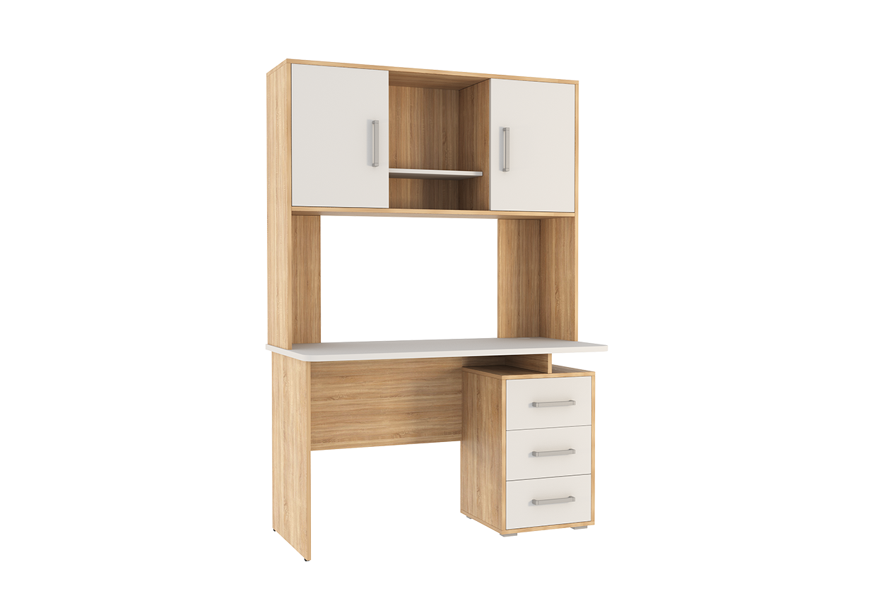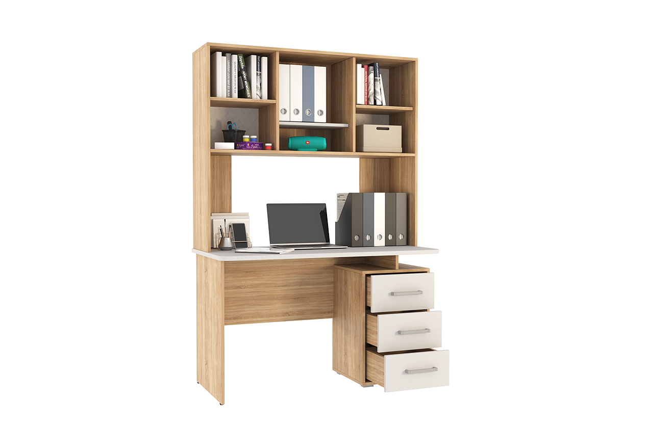 Компьютерный, письменный стол Рокс 2 с ящиками, 120х60х75 см, Дуб Сонома / Белый