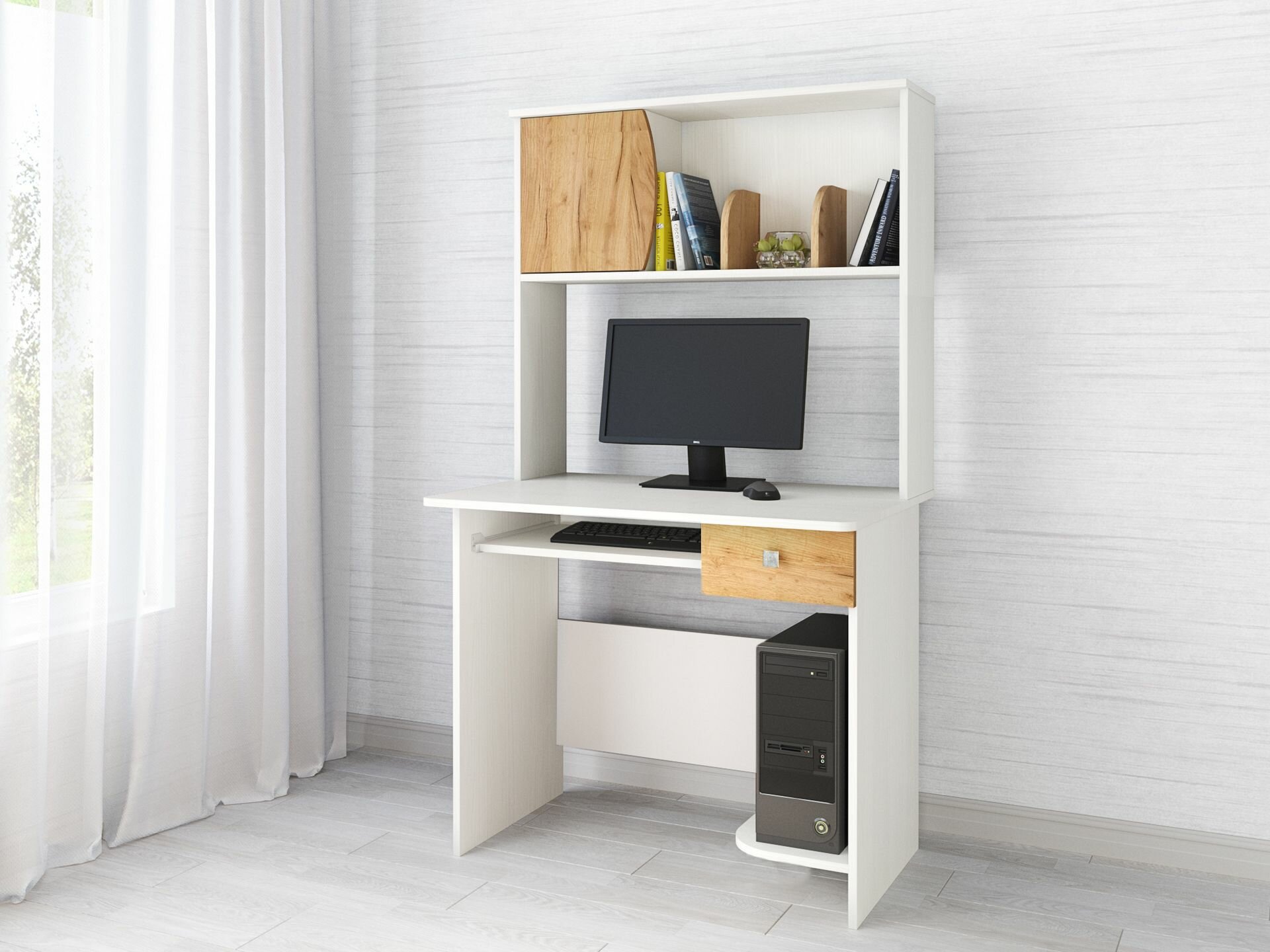 Стол компьютерный «Грета-4», дуб крафт золотой/белый (900х600х1580)