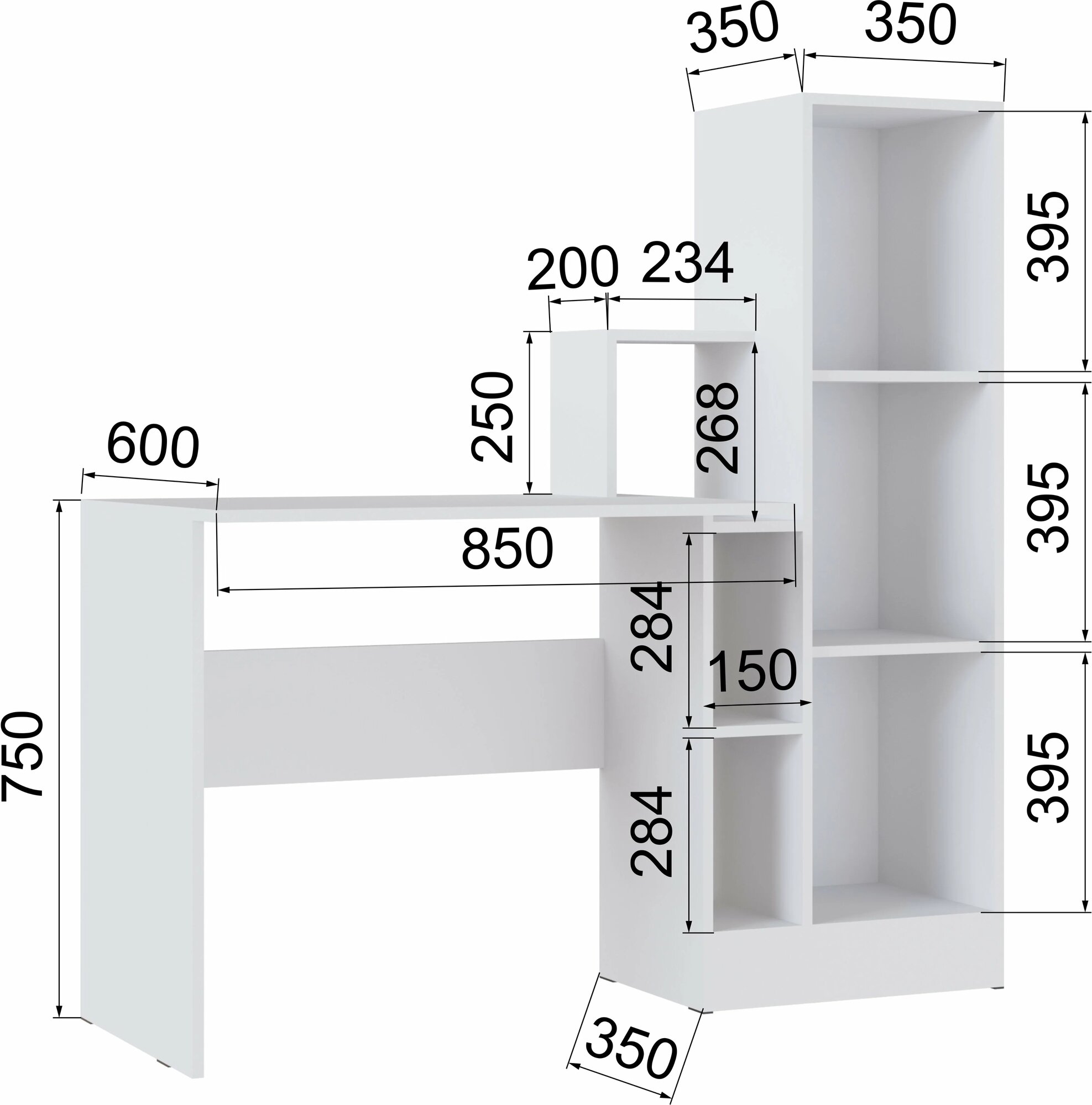 Компьютерный письменный стол прямой с полками и пеналом для школьника СКМ-2 Белый (135*60*135)