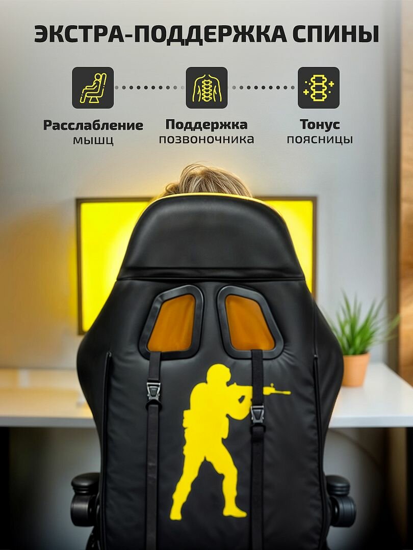 Кресло компьютерное игровое геймерское Classmark FT-088 офисное с подушками для спины и шеи на колесиках, черно-желтое, экокожа, газлифт