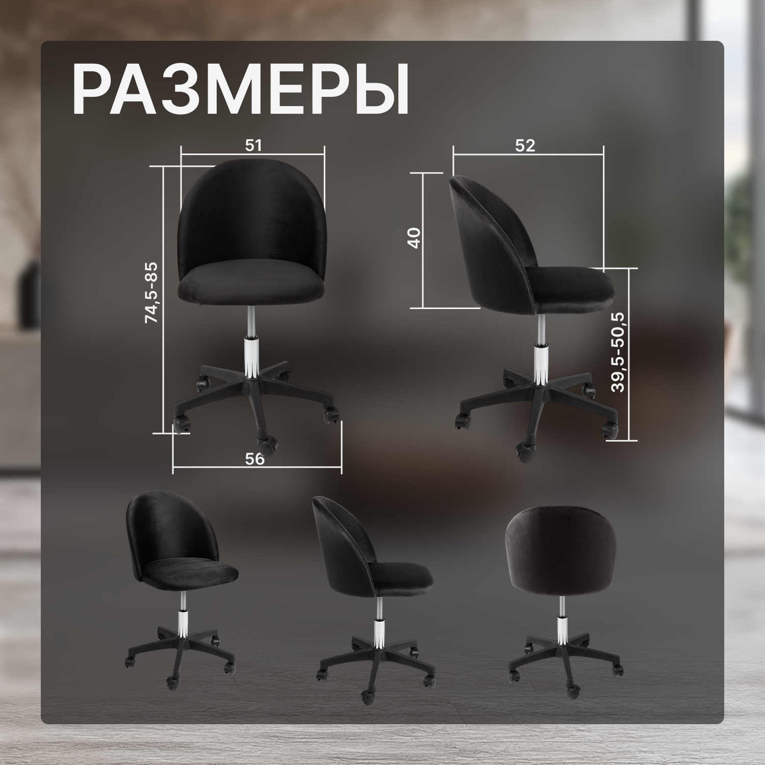 | Конструктивные особенности | без подлокотников / с газлифтом / с колесами (роликами) |