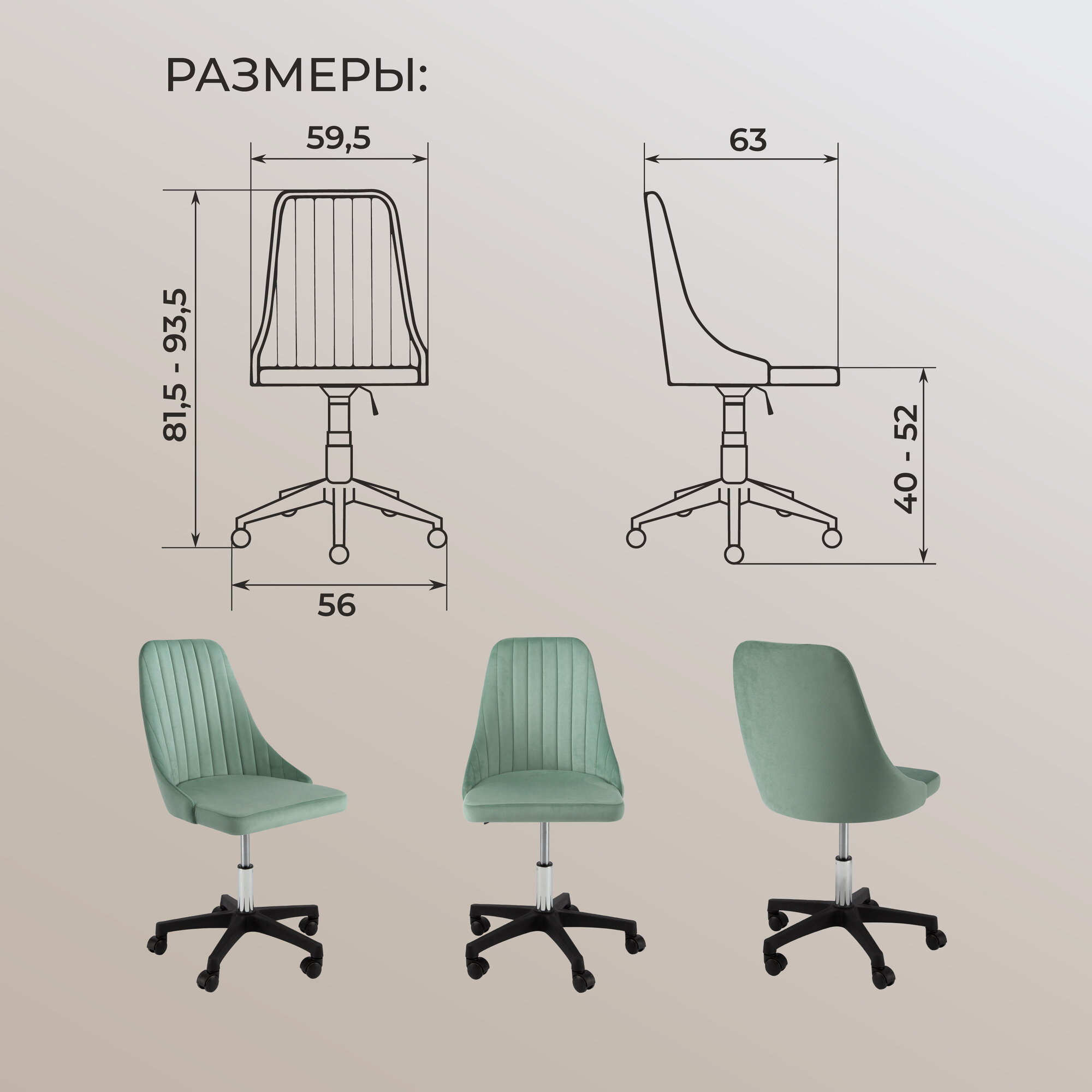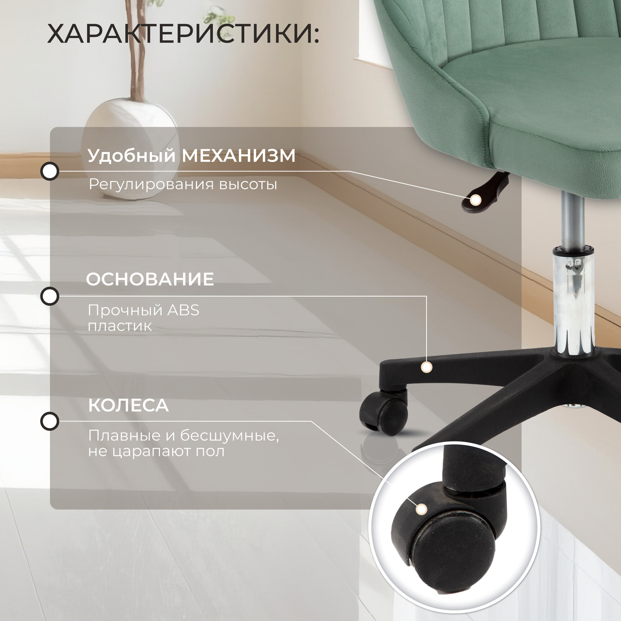 | Конструктивные особенности | без подлокотников / с газлифтом / с колесами (роликами) |