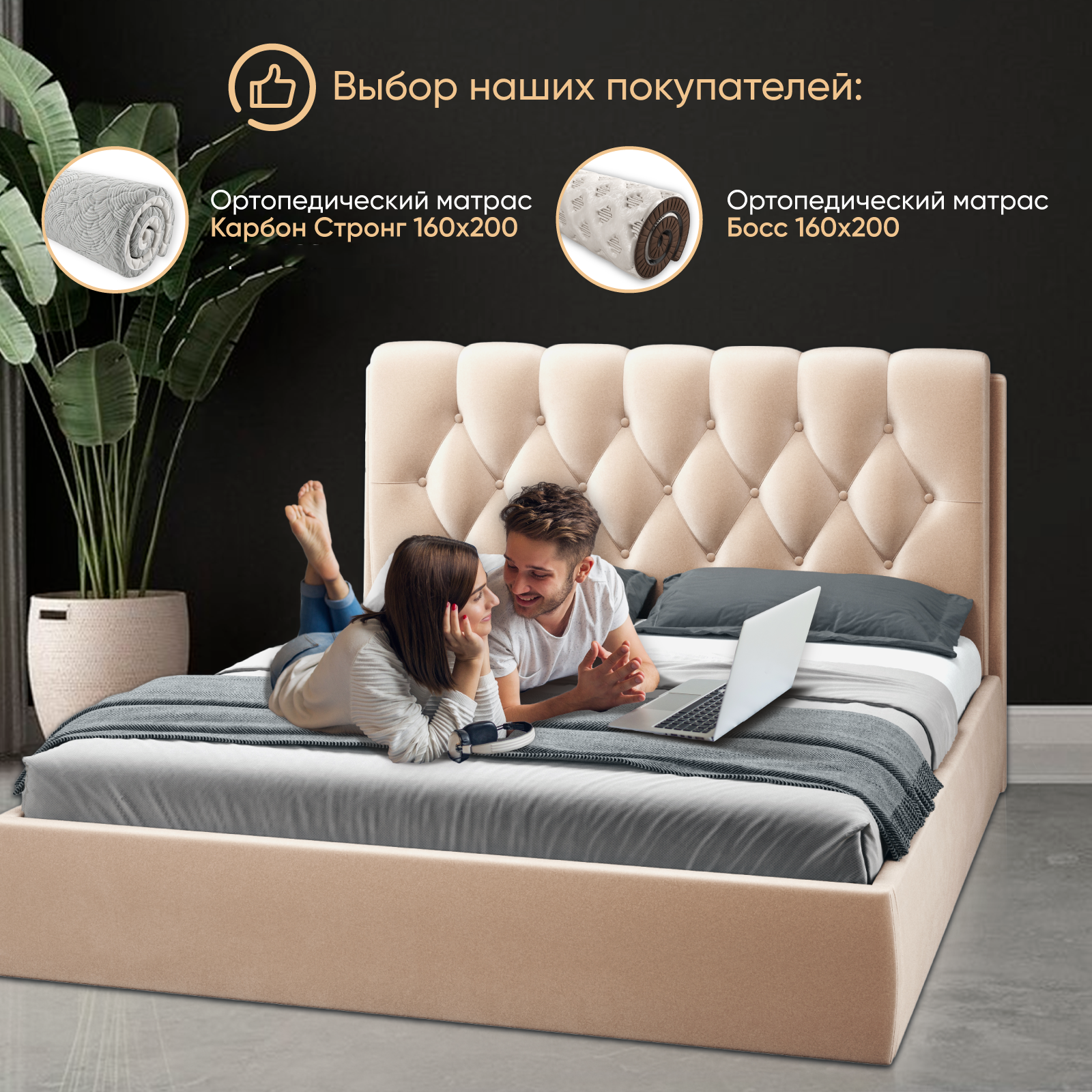СохранитьДвуспальная кровать 160х200 см с подъемным механизмом Империя для дома и спальни, бархат бежевый, Ами Мебель интересное: