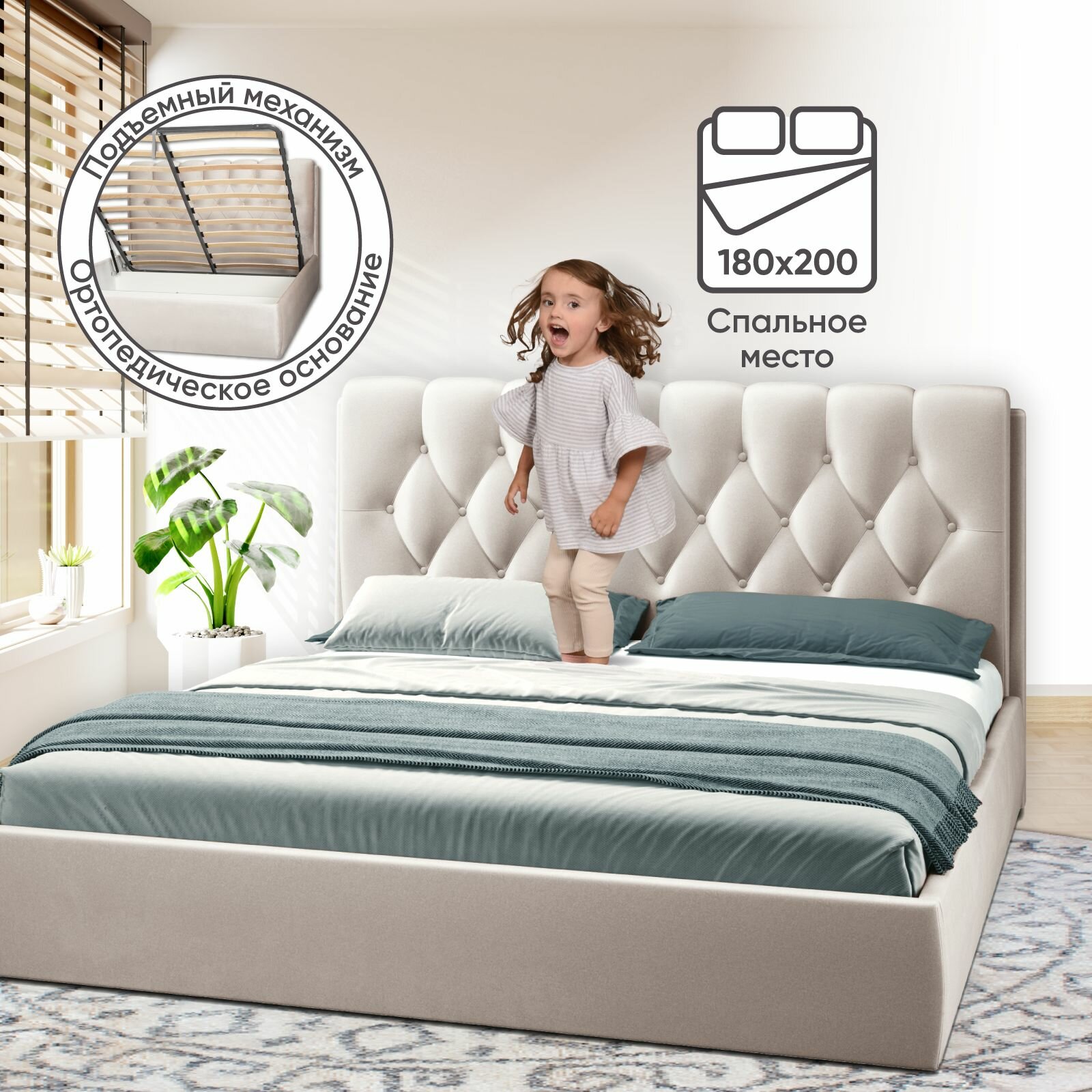 Двуспальная кровать 180х200 см с подъемным механизмом Империя для дома и спальни, бархат бежевый, Ами Мебель