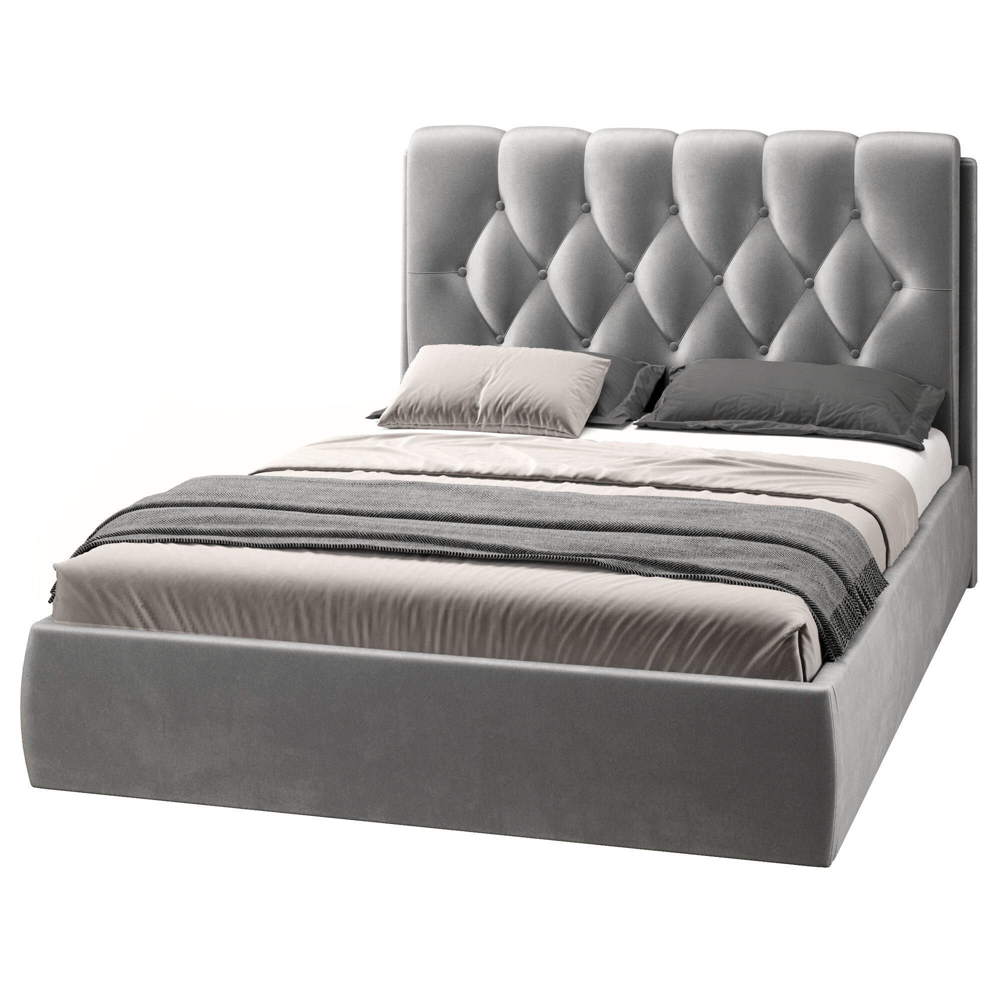 Купить Двуспальная кровать 140х200 см с подъемным механизмом Империя для дома и спальни, бархат серый, Ами Мебель