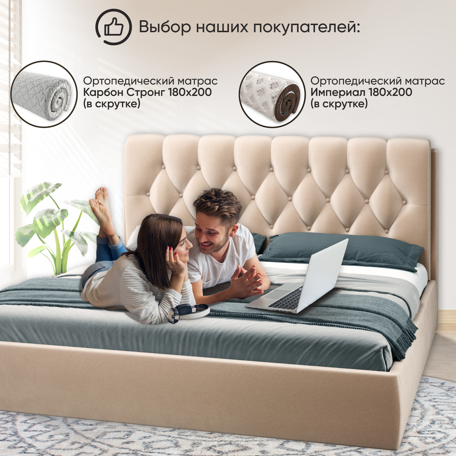 СохранитьДвуспальная кровать 180х200 см с подъемным механизмом Империя для дома и спальни, бархат бежевый, Ами Мебель интересное: