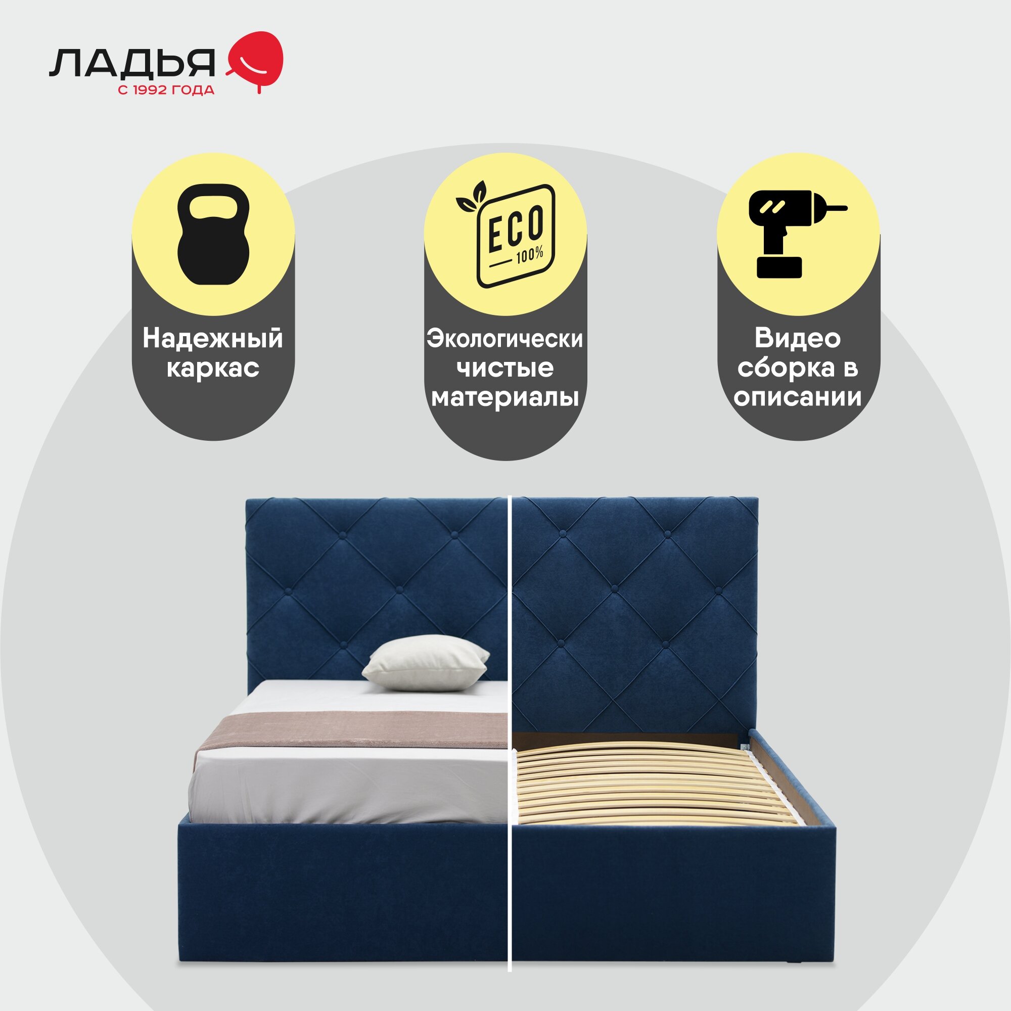 Двуспальная кровать Артэ 140х200, с мягким изголовьем для дома и спальни, Ладья, ортопедическое основание, Aloba Baltic