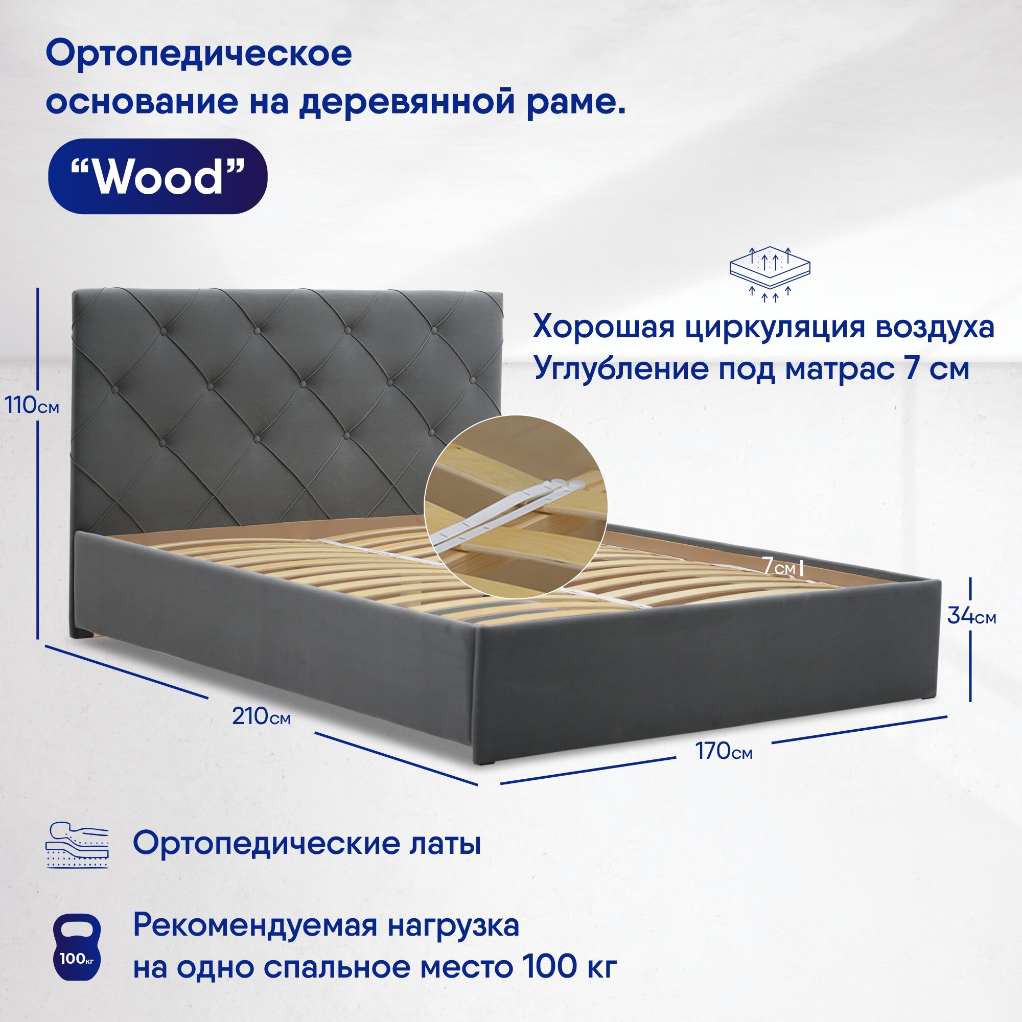 | Дополнительная информация | Кровать без матраса и подъемного механизма |