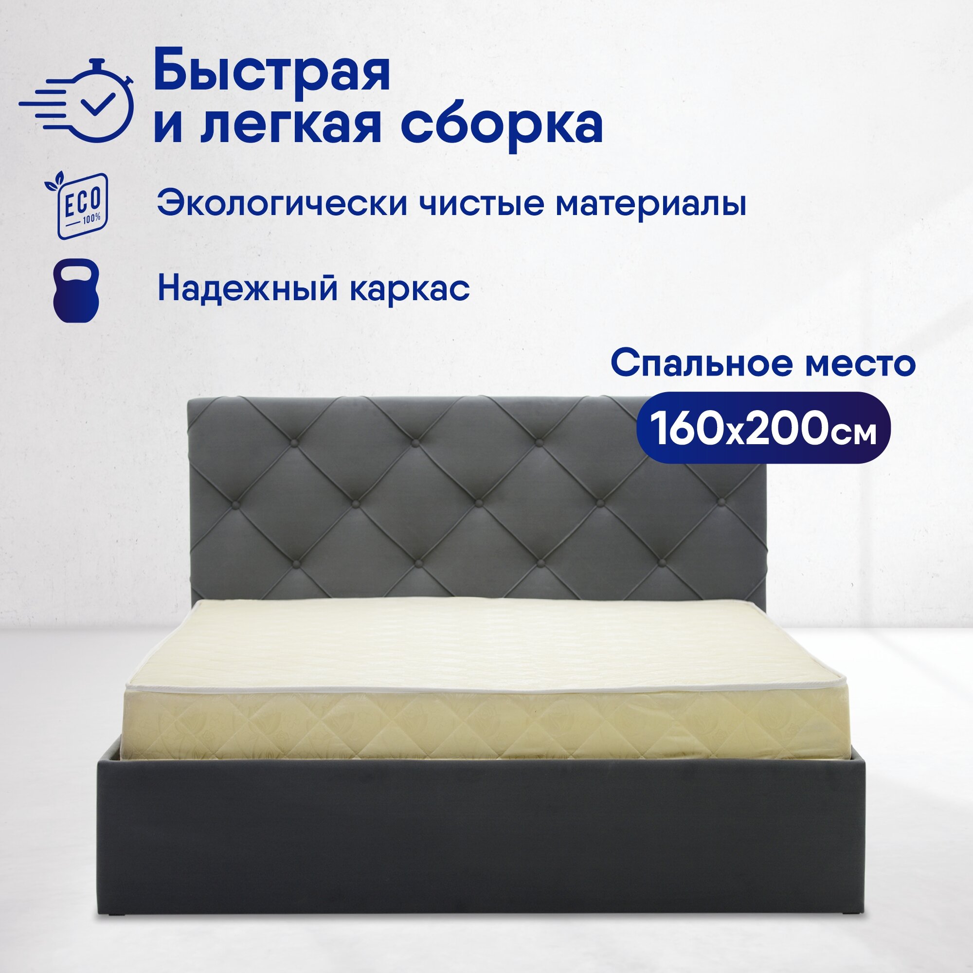 Кровать с матрасом Роза Серая Велюр 160х200