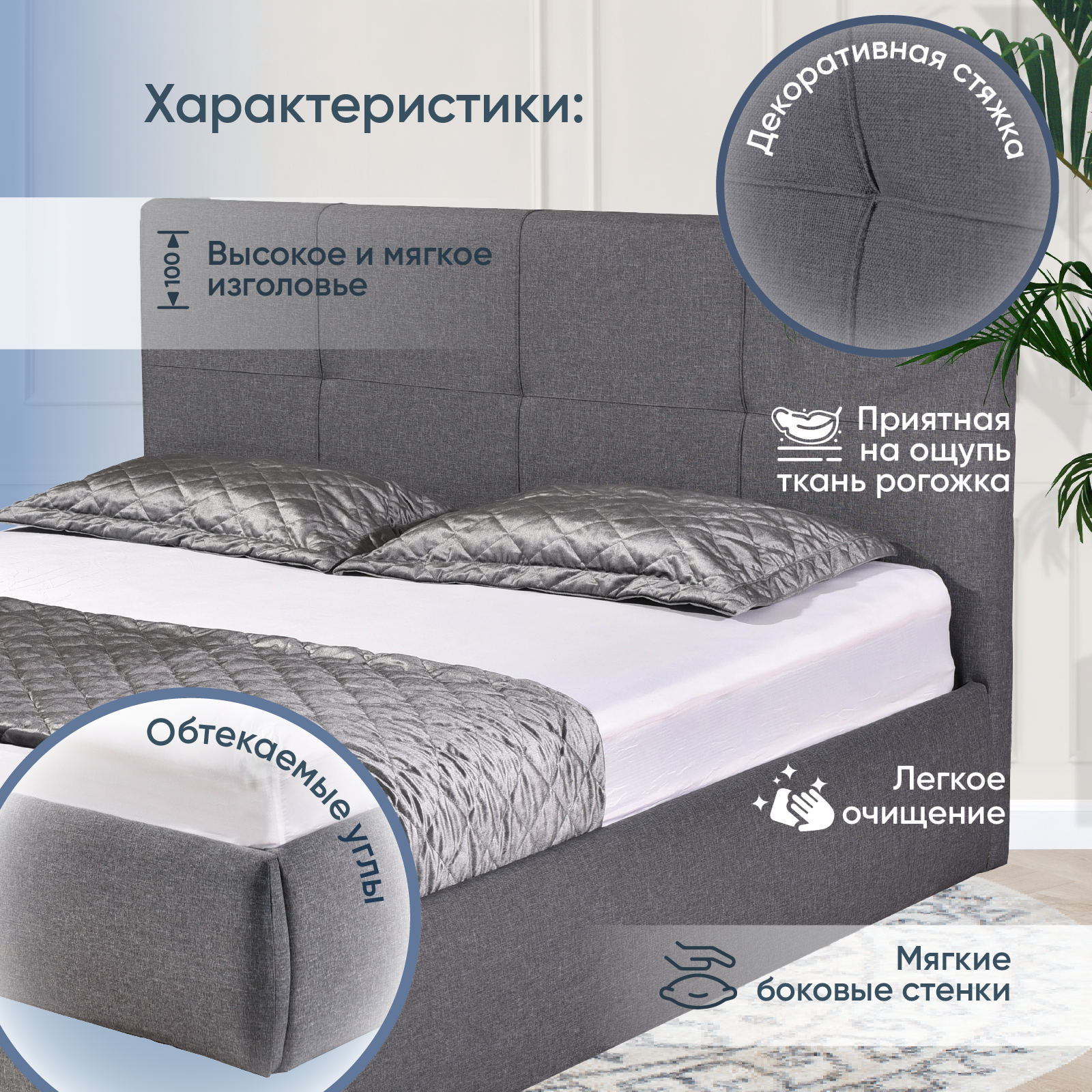 | Особенности | мягкое изголовье, с изножьем, с подъемным механизмом, с ящиком для белья, усиленная конструкция |