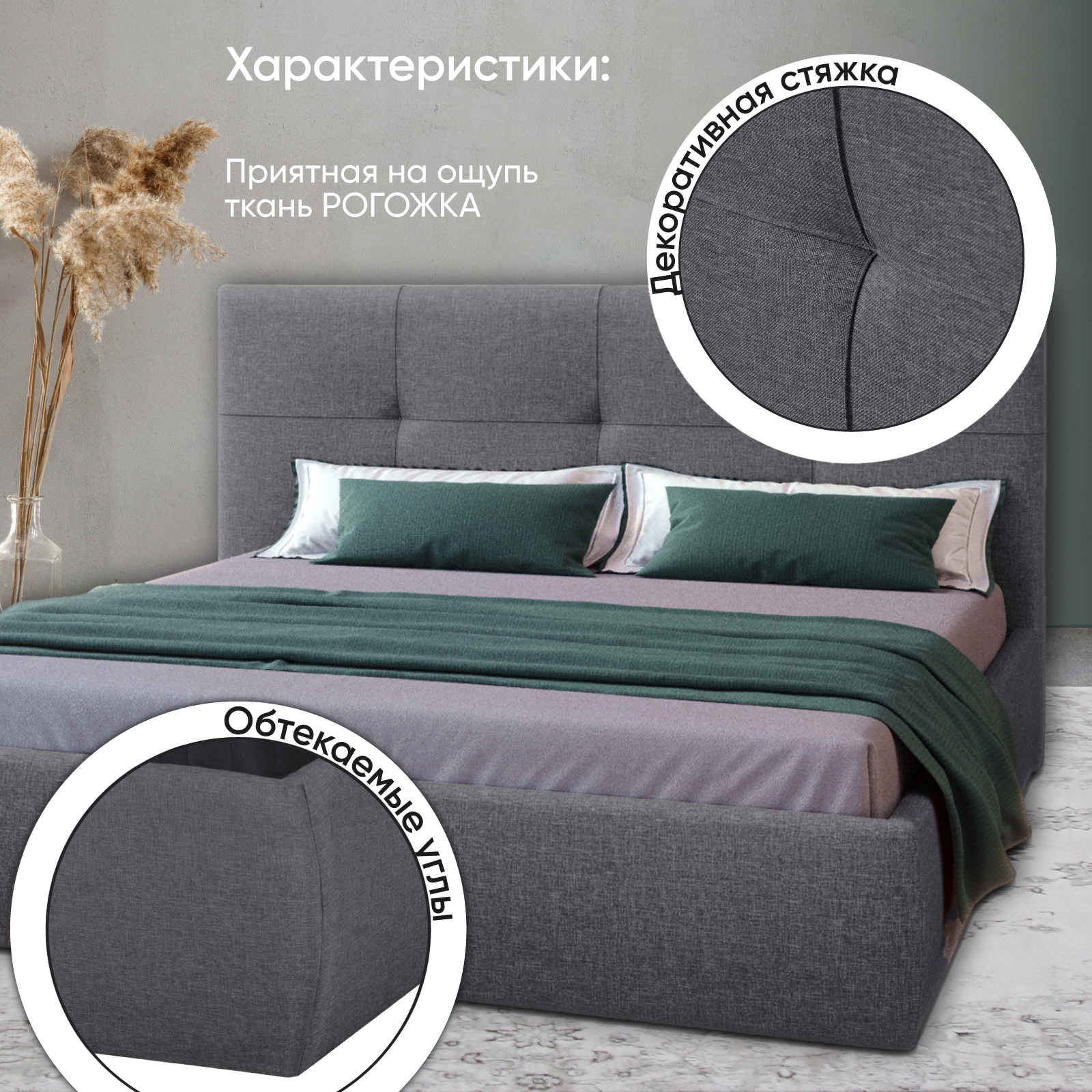 Двуспальная кровать 180х200 см с подъемным механизмом Палермо для дома и спальни, рогожка серая, Ами Мебель