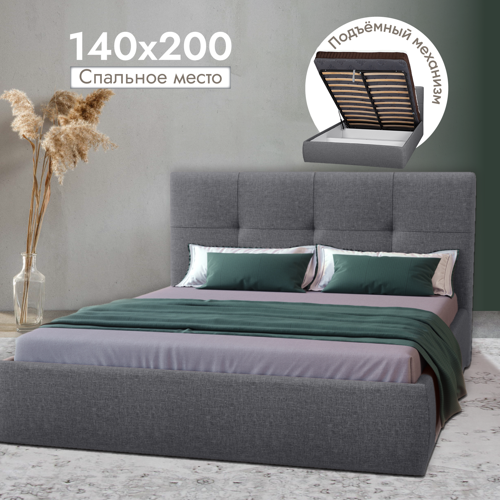 СохранитьДвуспальная кровать 140х200 см с подъемным механизмом Палермо для дома и спальни, рогожка серая, Ами Мебель интересное: