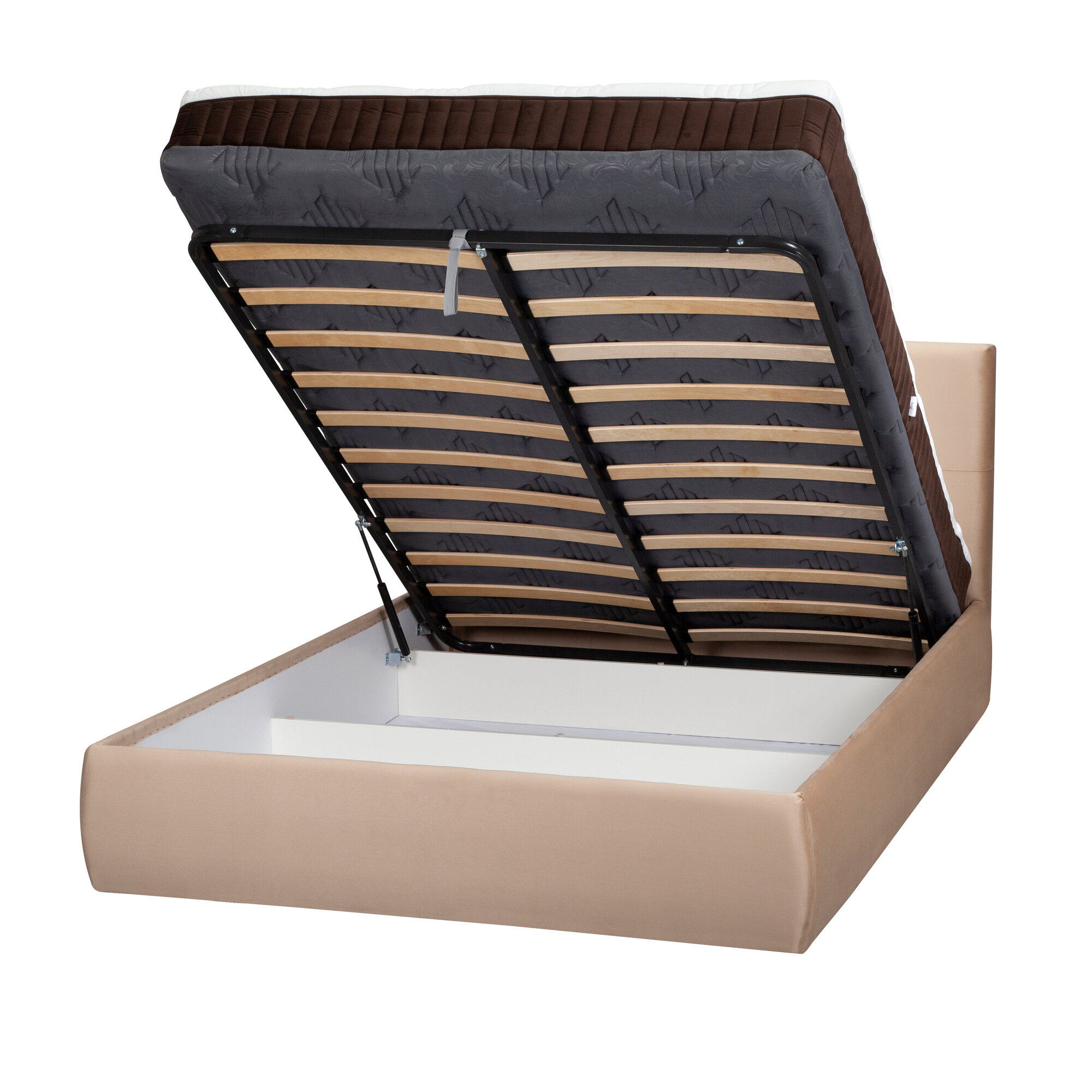 Двуспальная кровать 160х200 см Прима Люкс, подъемный механизм, ортопедическое основание, усиленные ламели, ниша для белья, вельвет бежевый, Ами Мебель Беларусь
