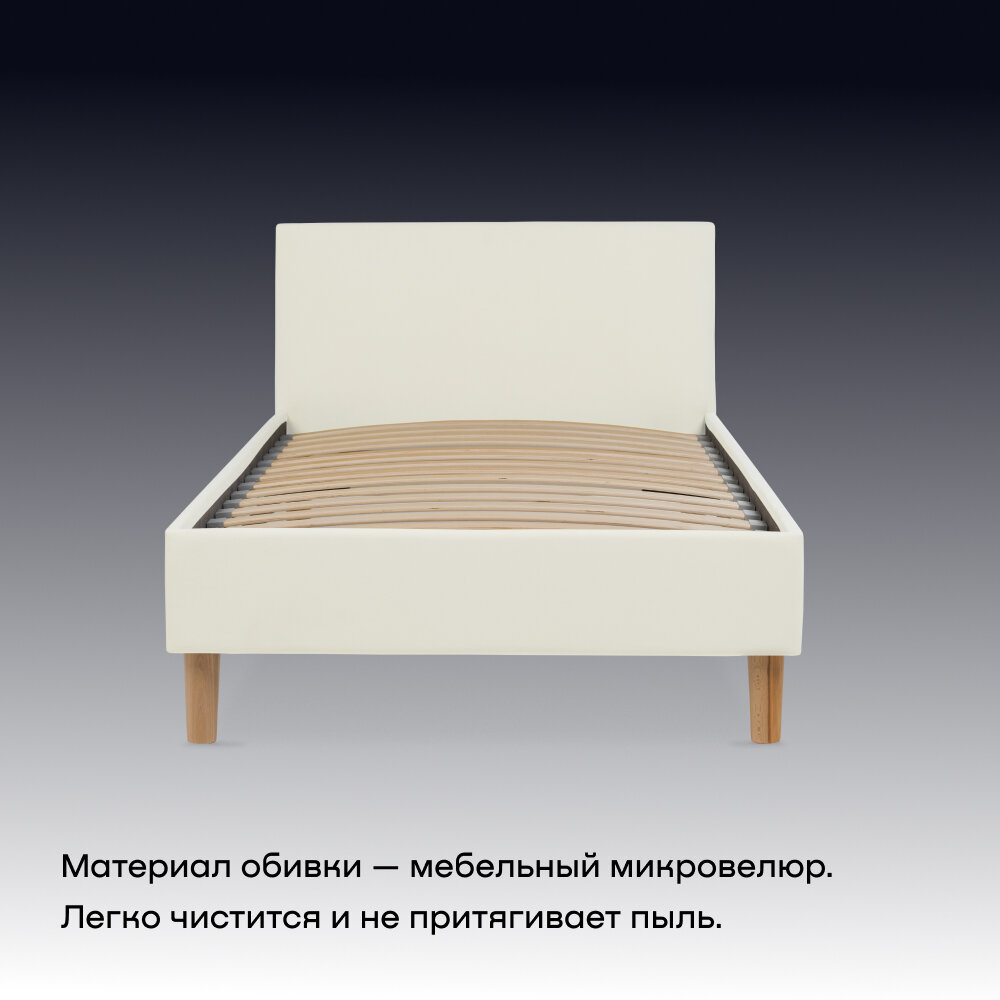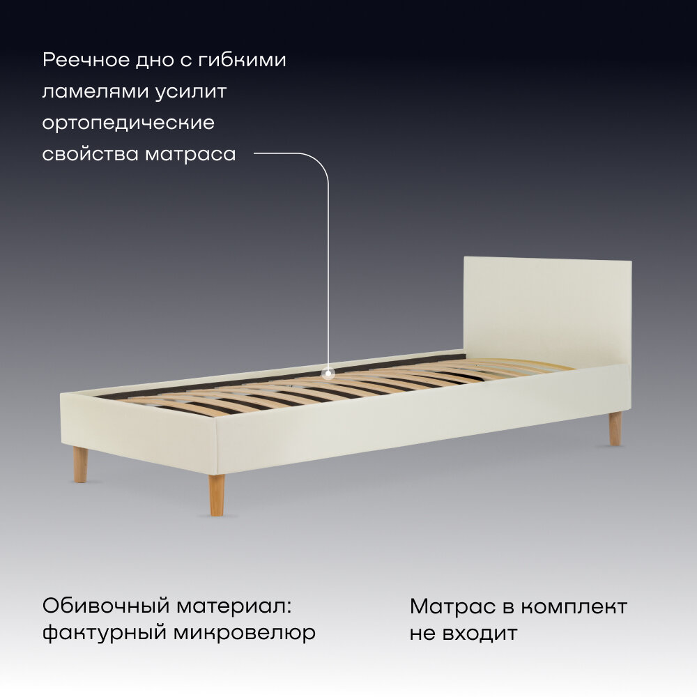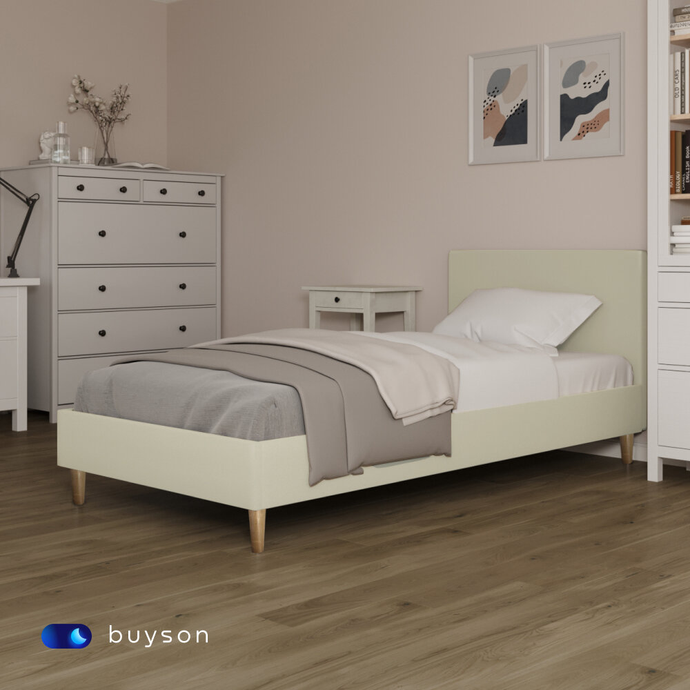 Купить Односпальная кровать buyson BuyStyle 200х90 см, микровелюр, слоновая кость