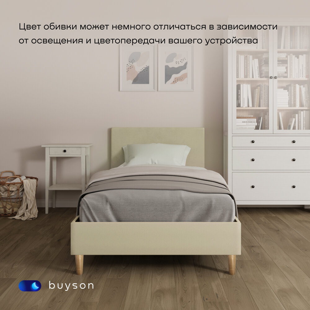 Односпальная кровать buyson BuyStyle 200х90 см, микровелюр, бежевый