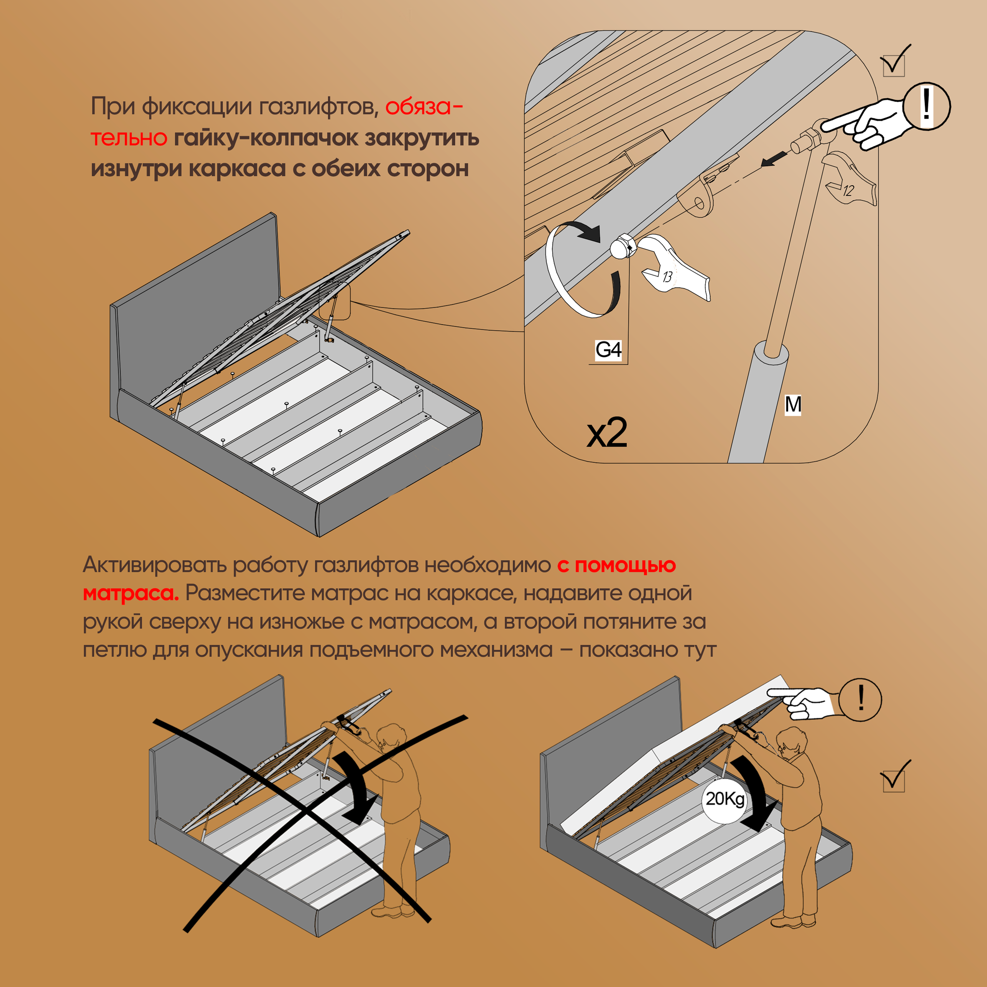 | Особенности | мягкое изголовье, с изножьем, с подъемным механизмом, с ящиком для белья, усиленная конструкция |